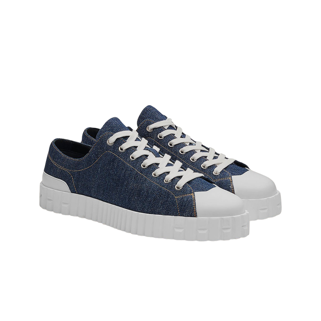에르메스 크로스 스니커즈 데님 캔버스 카프스킨 & 블루 퐁세