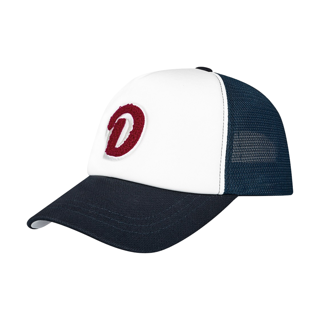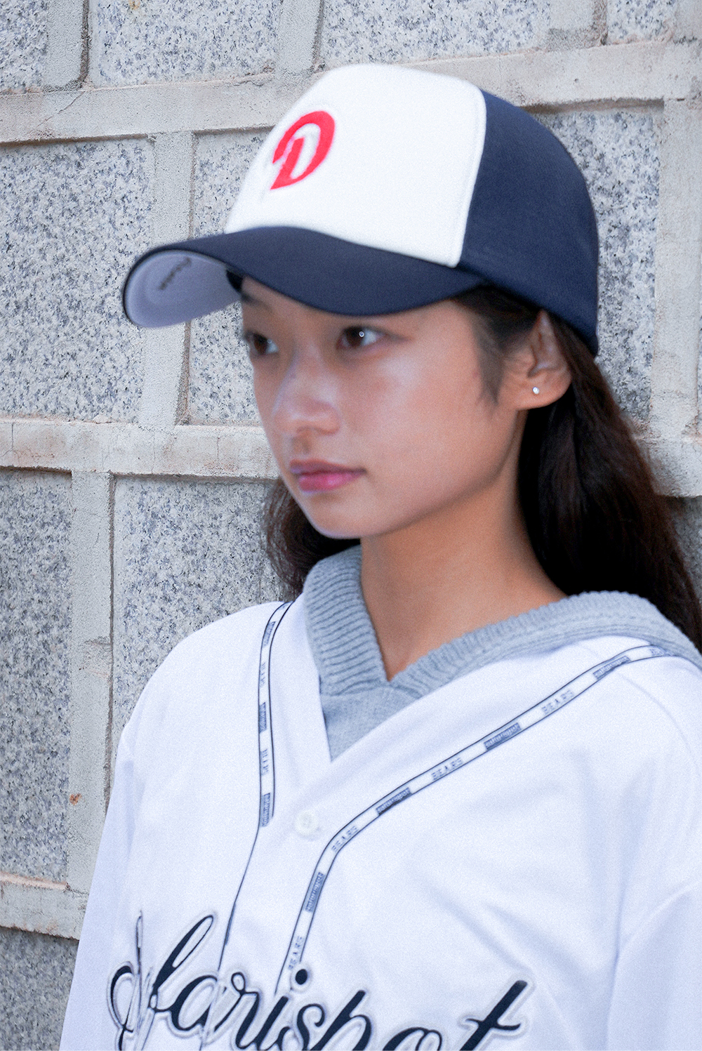 두산베어스 상징 로고를 적용한 모자로 전면은 흰색 창과 측면은 네이비 컬러로 조합된 투톤 배경으로 두산 팀 컬러 느낌을 살린 제품입니다.