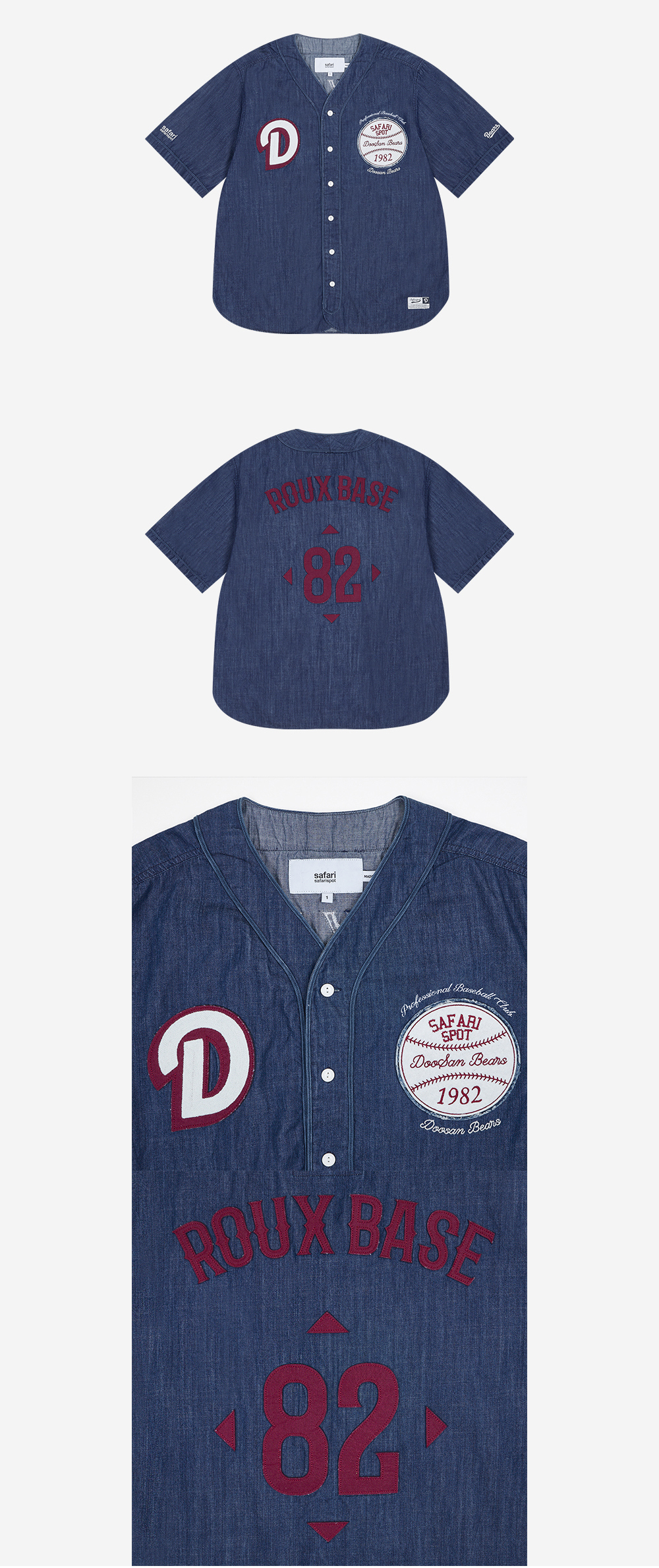 자연스러 워싱감의 데님 원단을 사용해 캐주얼하면서도 유니크한 분위기를 연출하였으며, 전면의 패치워크와 자수 그래픽으로 베이스볼 저지 특유의 감성을 더한 제품입니다. W MODEL : 159CM, SIZE: 1 M MODEL : 176CM, SIZE: 2