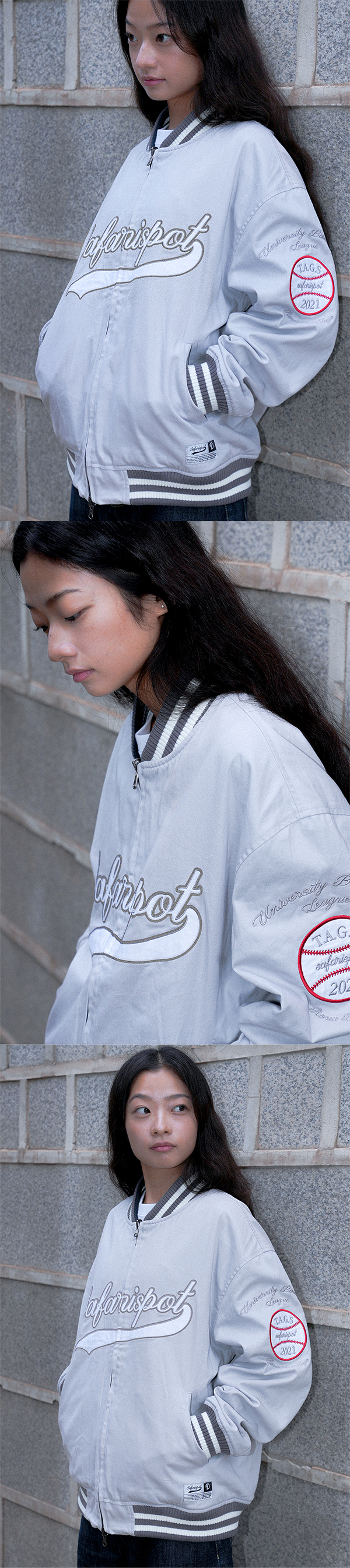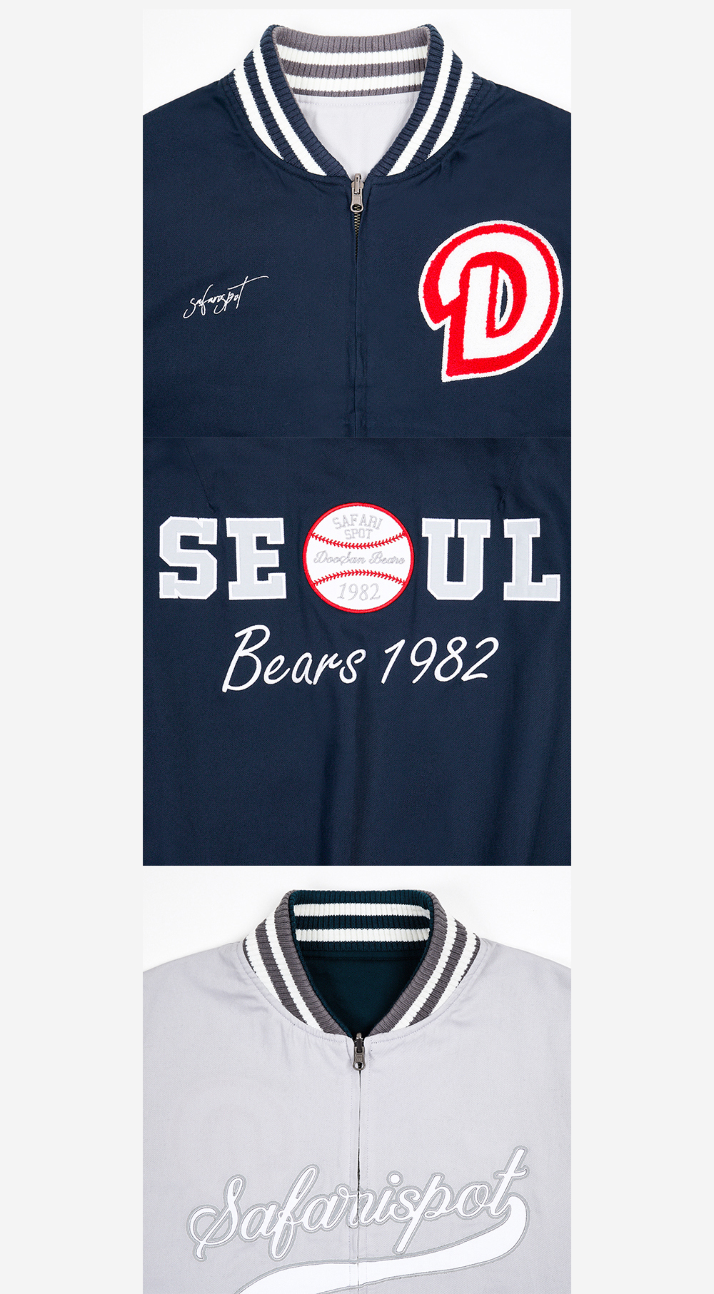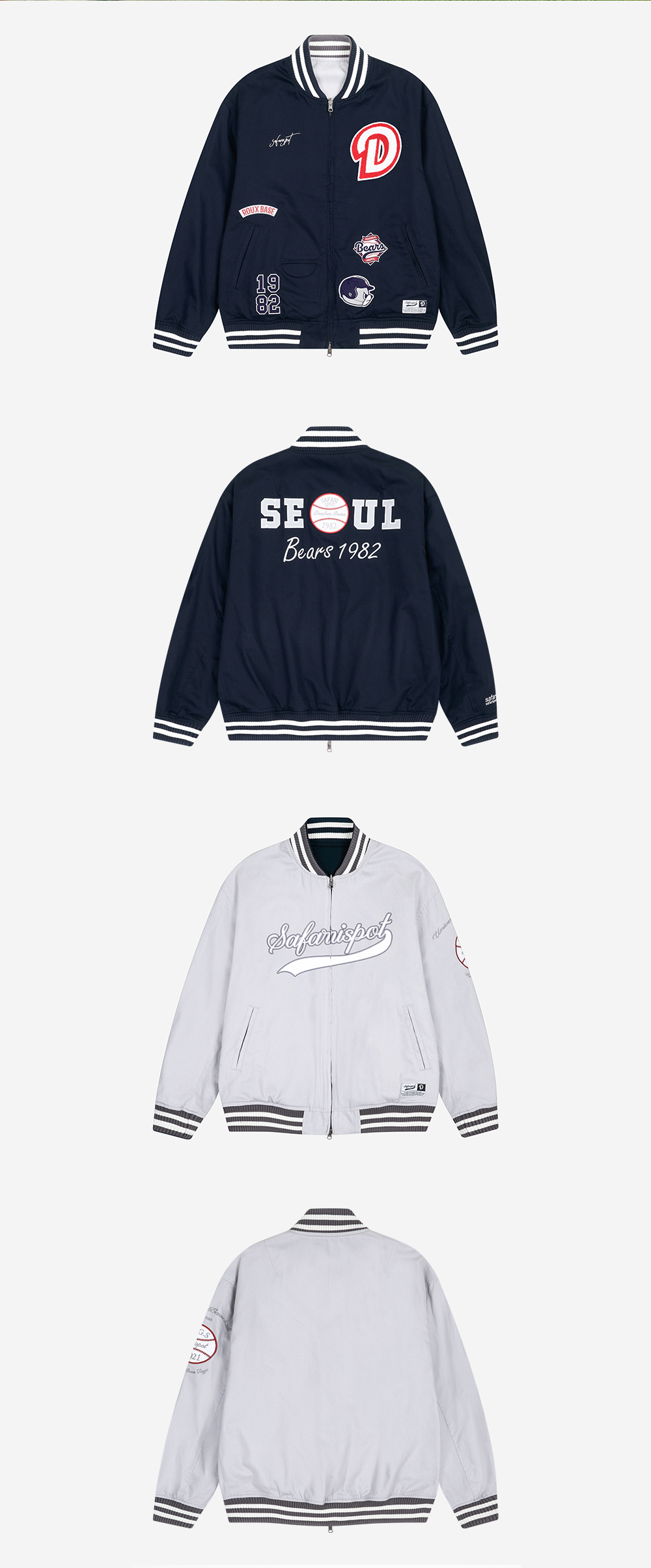 사파리스팟 X 베어스 리버시블 바시티 자켓 - 네이비/그레이