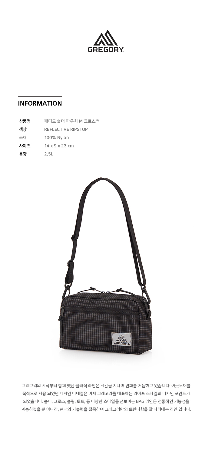 그레고리 패디드 숄더 파우치 M 리플렉티브 립스탑 2.5L크로스백