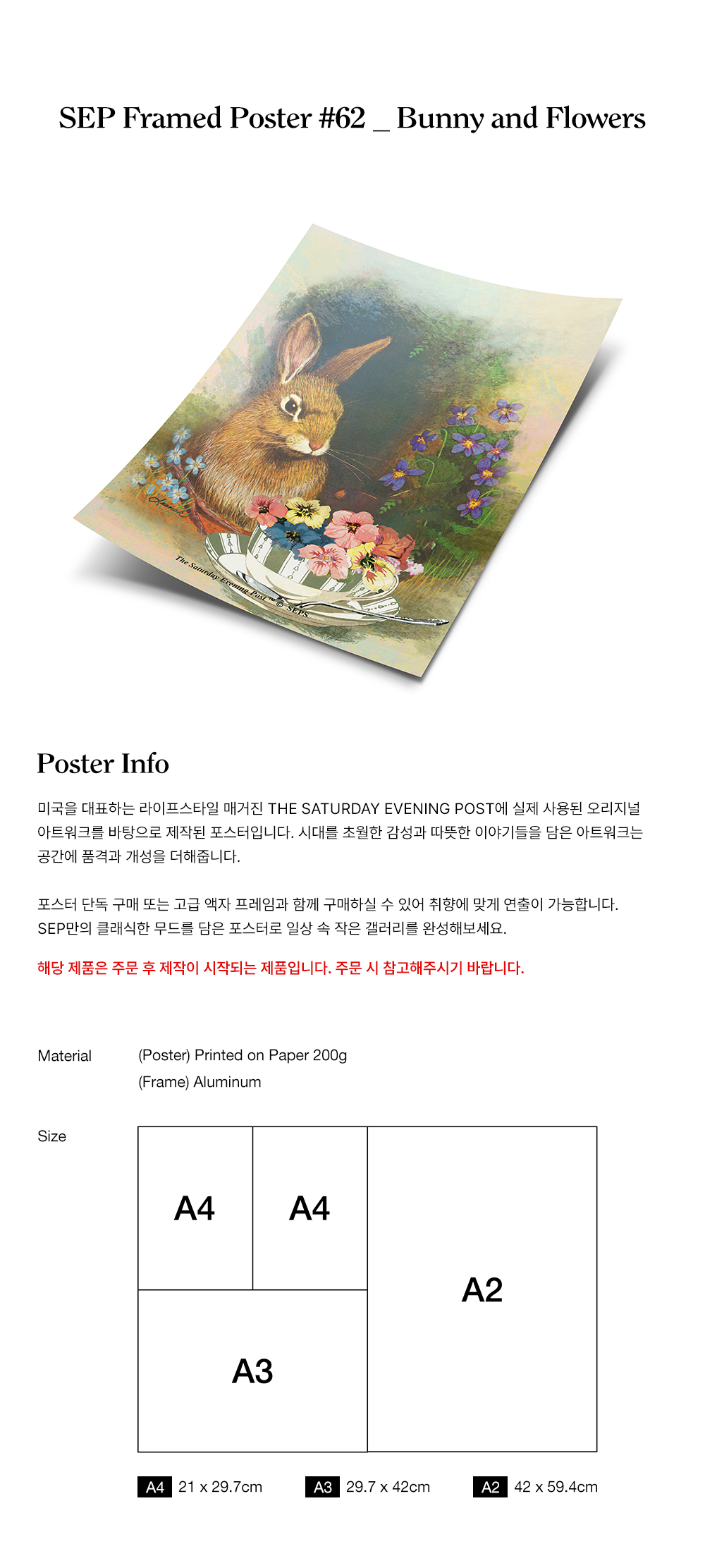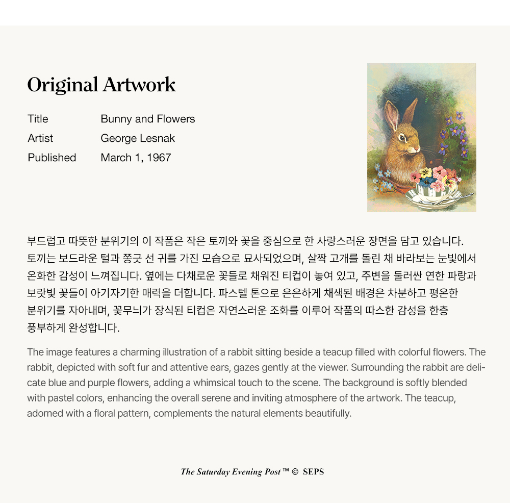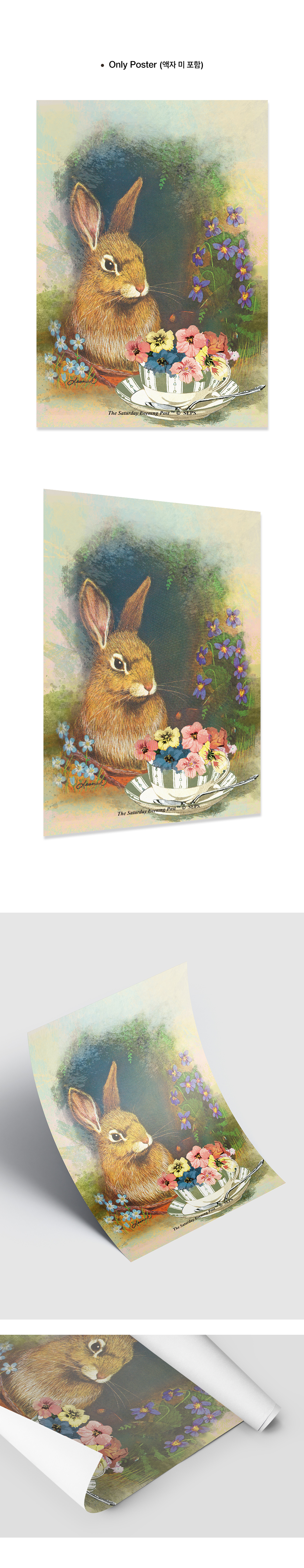 더 세터데이 이브닝 포스트 프레임 포스터 토끼와 꽃_A2