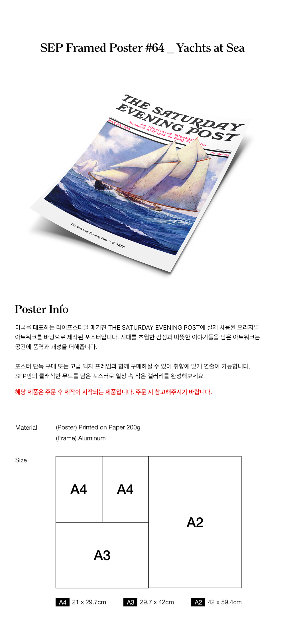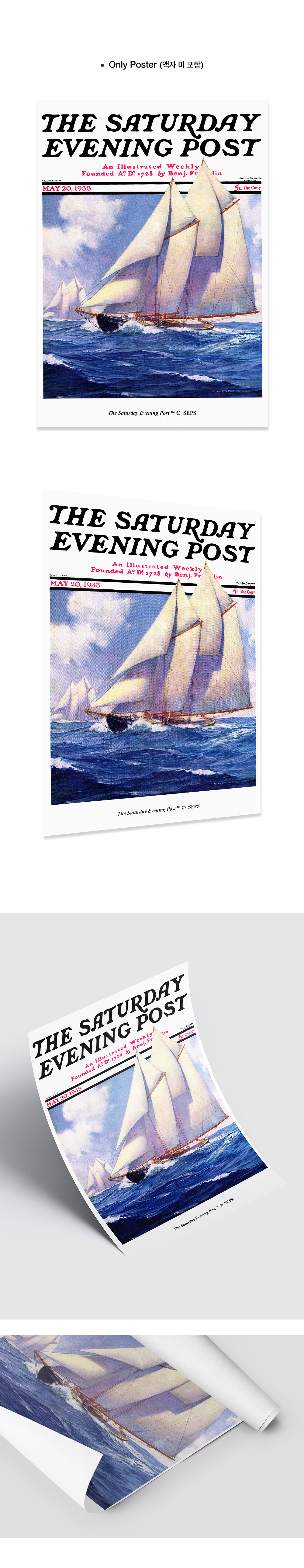 더 세터데이 이브닝 포스트 프레임 포스터 바다 위의 요트_A2