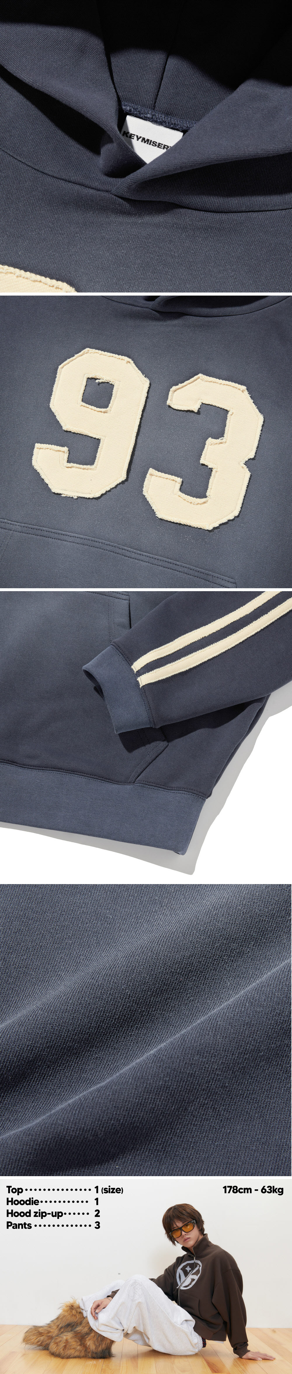 키미저리 빈티지 워시 93 크롭 후드 - 블루