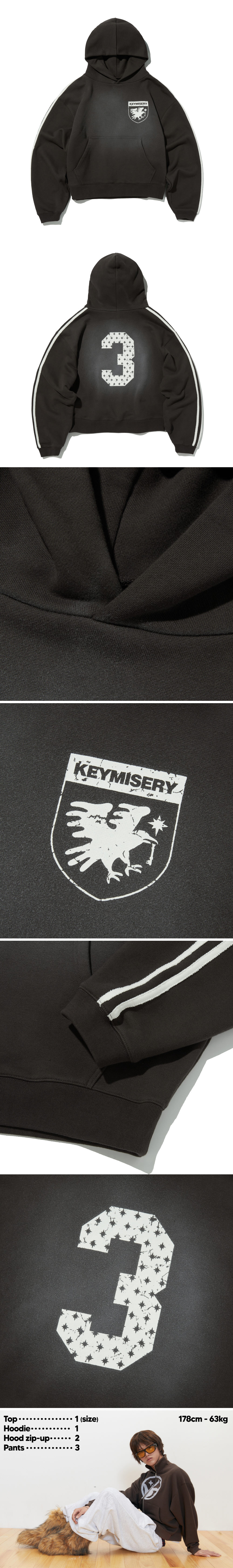 키미저리 빈티지 스프레이 크로우 키스 크롭 후드 - 차콜