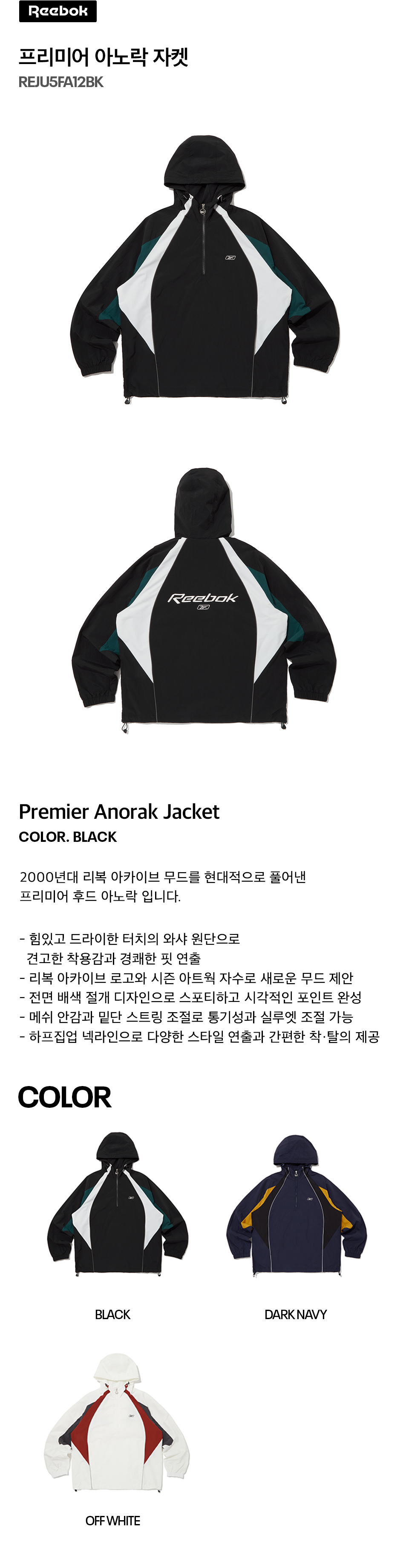 리복 프리미어 후드 아노락 블랙