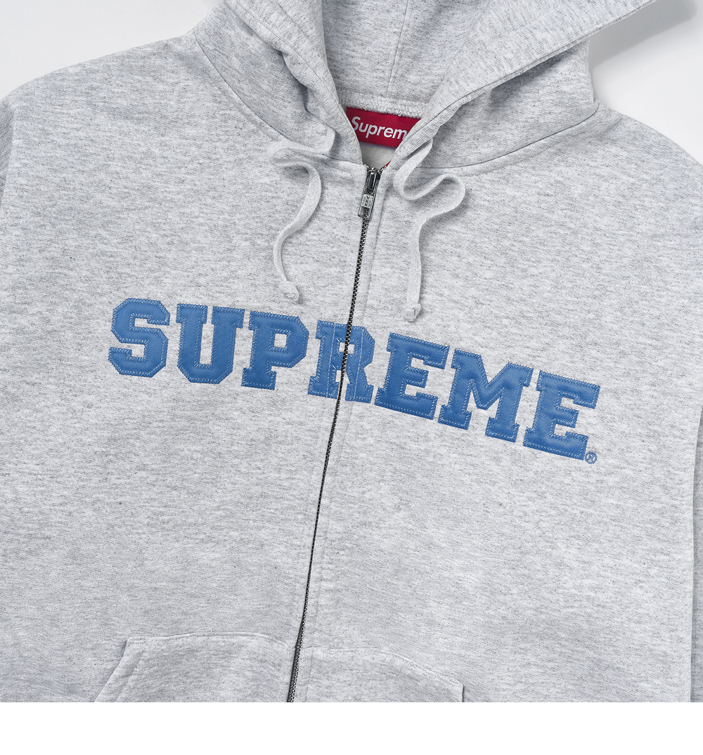 Supreme Collegiate Applique Zip Up Hooded Sweatshirt Ash Grey - 25FW