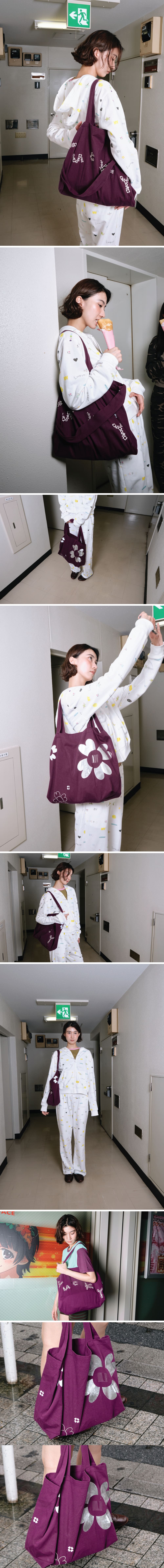 • 25 LUCKY 그래픽 레터링 자수 • 클로바 필름 전사 인쇄 • 탄탄한 면 소재 • 빅사이즈 도트백 • 두 종류의 스트랩 • 모델 착용 사이즈 FREE