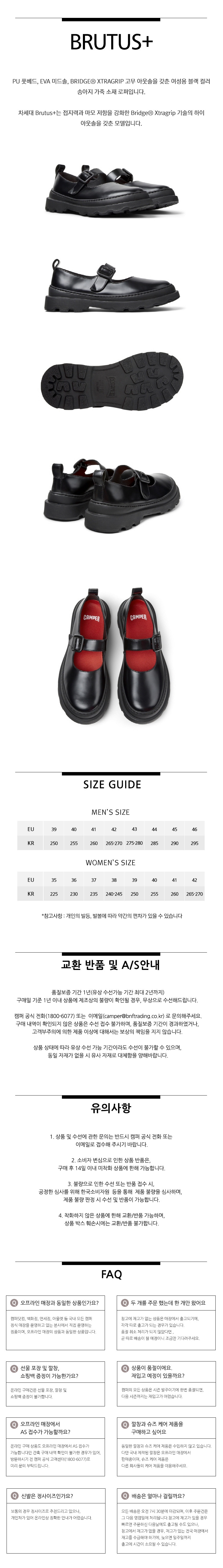 캠퍼 여성 브루투스+ 정장화 블랙