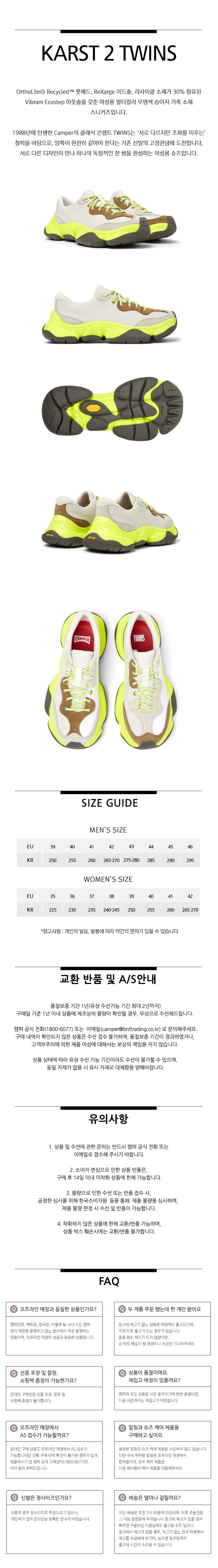 캠퍼 여성 카스트2 스니커즈 라임