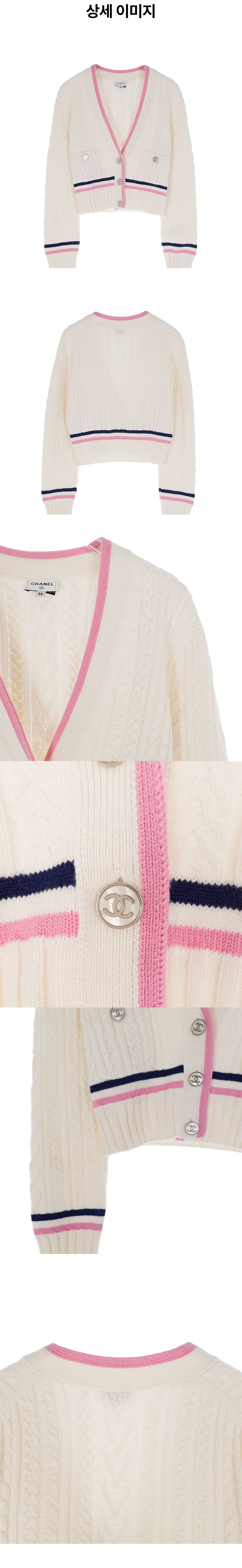 샤넬 23P 캐시미어 가디건 38 에크루/핑크/네이비블루