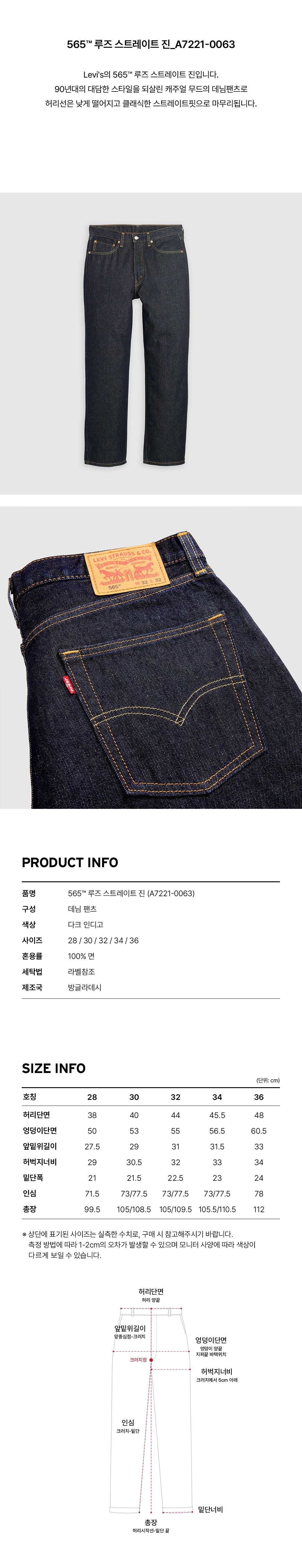 리바이스 565 루즈 스트레이트 진 다크 인디고