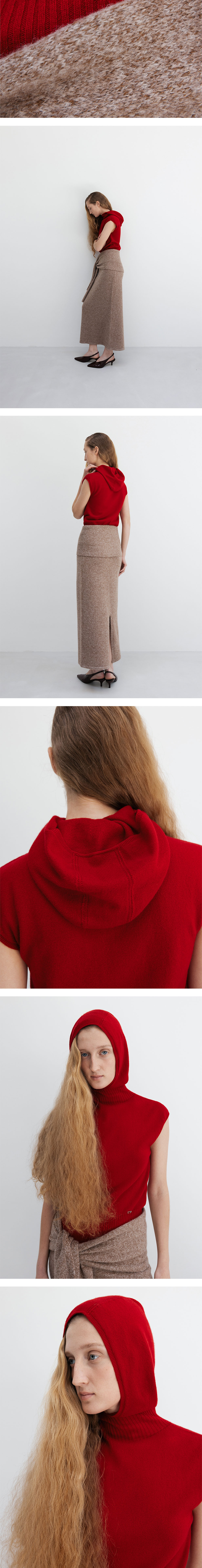 UMARMUNG Ultra Fine Merino Wholegarment Hooded Vest_Red