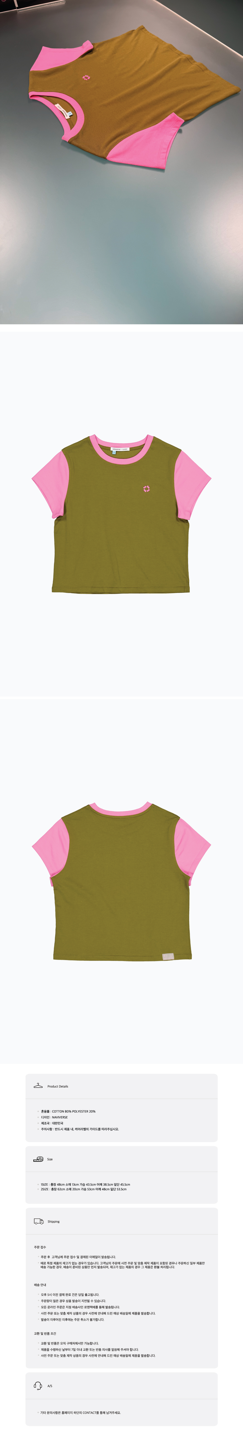 • 소매, 네크 배색 디자인 • 미니 클로바 자수 • 시원하고 힘있는 코튼 소재 • 두가지 다른 실루엣 타입 • 모델 키 169cm, 1사이즈 착용