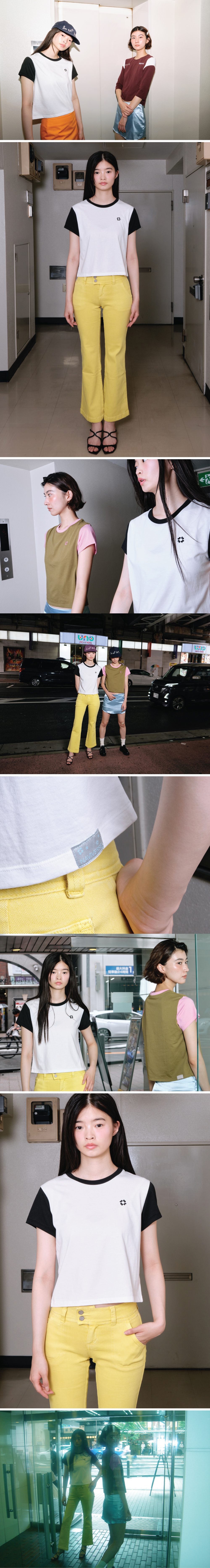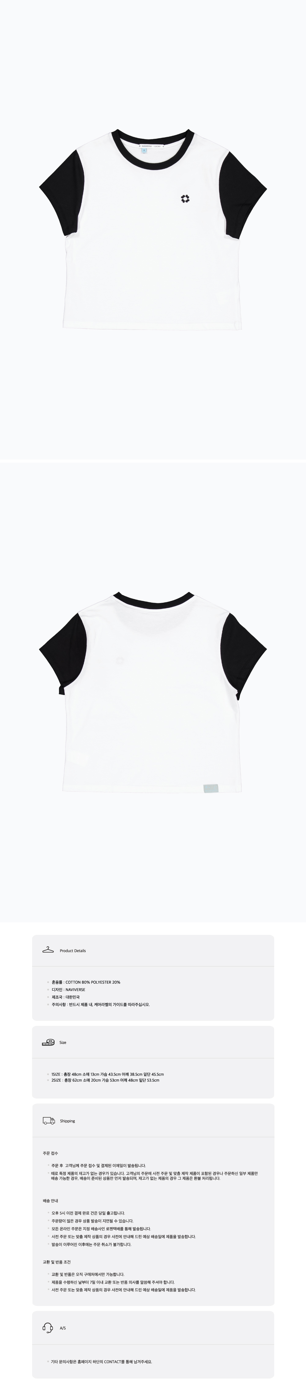 • 소매, 네크 배색 디자인 • 미니 클로바 자수 • 시원하고 힘있는 코튼 소재 • 두가지 다른 실루엣 타입 • 모델 키 170cm, 1 사이즈 착용