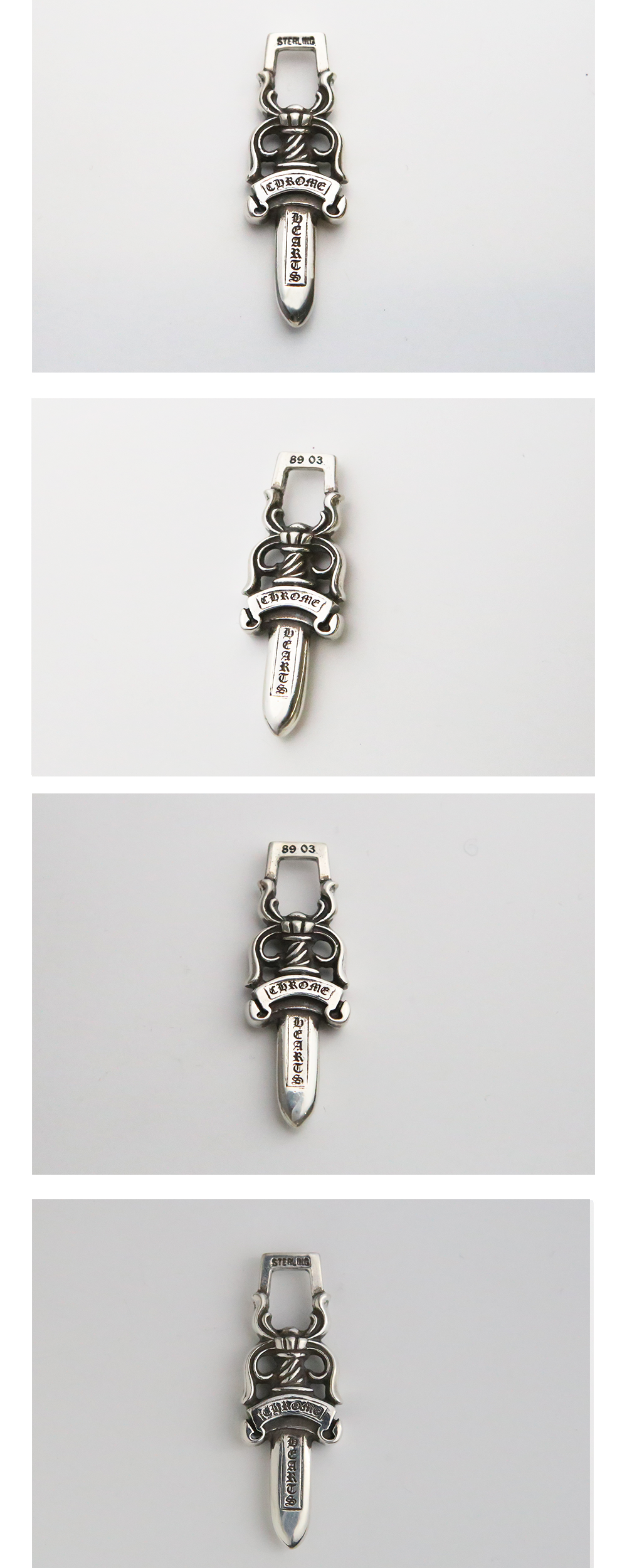 Hansroom Chrome Hearts #10 Dagger 한스룸 크롬하츠 10대거 펜던트 *모델 품번 120 527 578 *상품 상태 중고 B등급 *주의 수제작 브랜드 특성상 개체차이가 있을 수 있음 *소재 925실버 *치수 가로 1.5cm 세로 4.5cm (측정 방법에 따라 사이즈에 일부 오차가 있을 수 있습니다.) *구성품: 한스룸 쇼핑백, 자체 보증서, 폴리싱천 ,악세사리 케이스