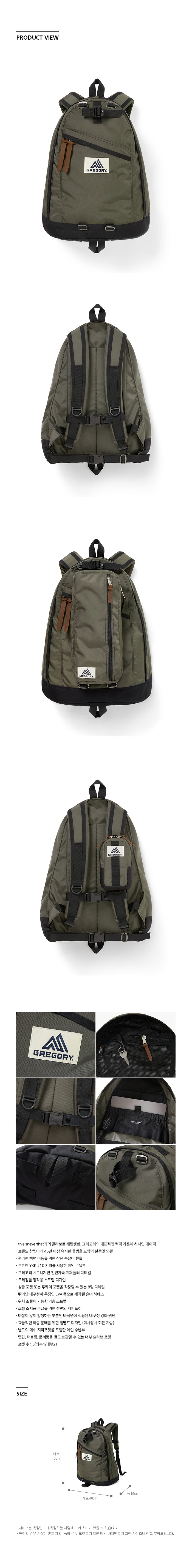 그레고리 디네댓 콜라보 데이팩 백팩 올리브X블랙