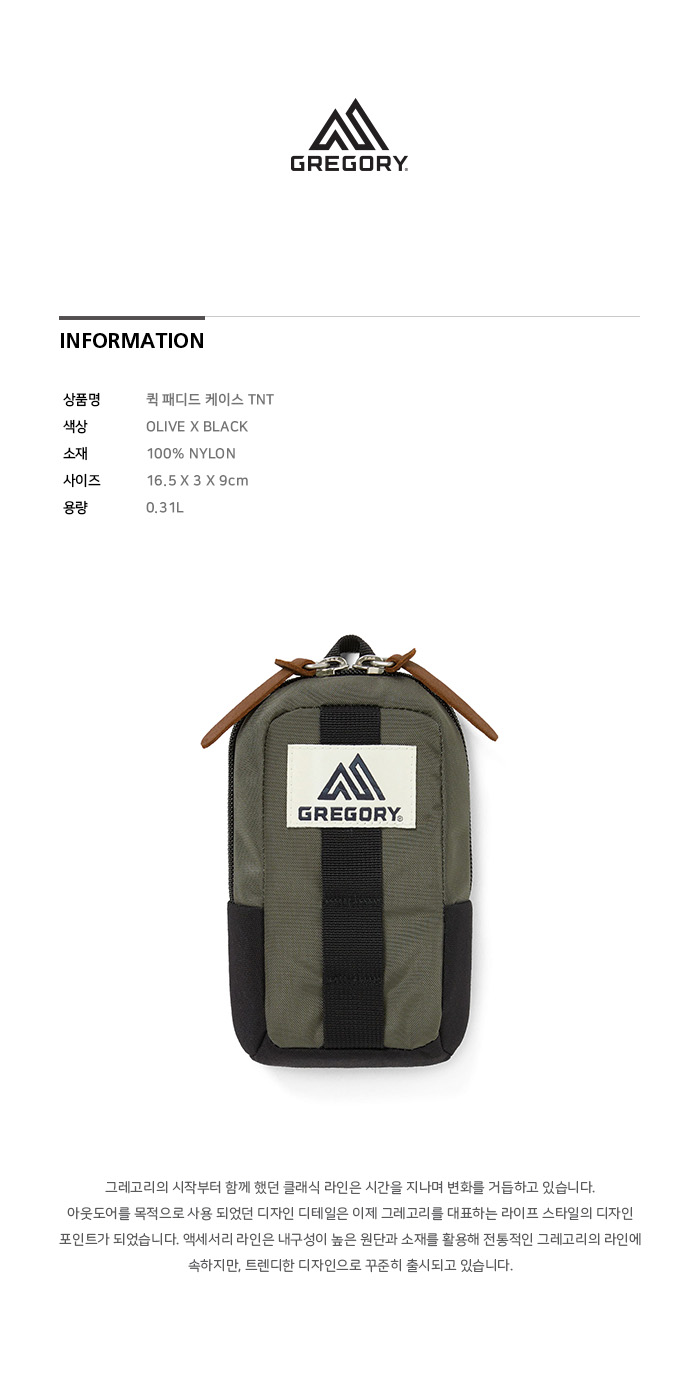 그레고리 디네댓 콜라보 퀵 패디드 케이스 올리브X블랙