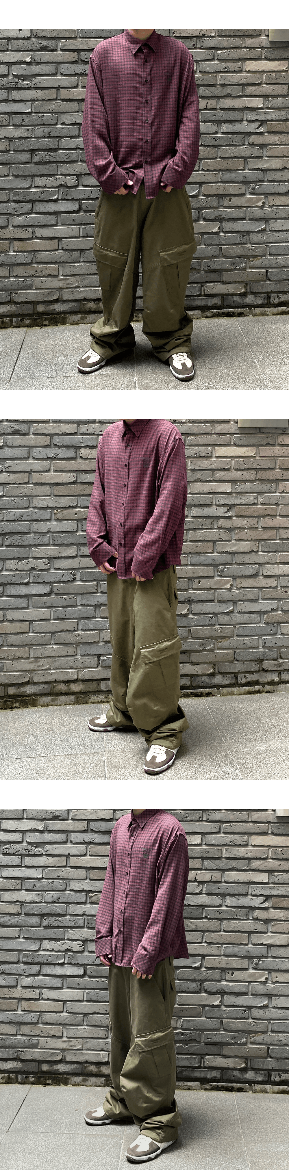 Undermycar MU.135 Circle Logo Basic Long Sleeve Check Shirts Pink Gray