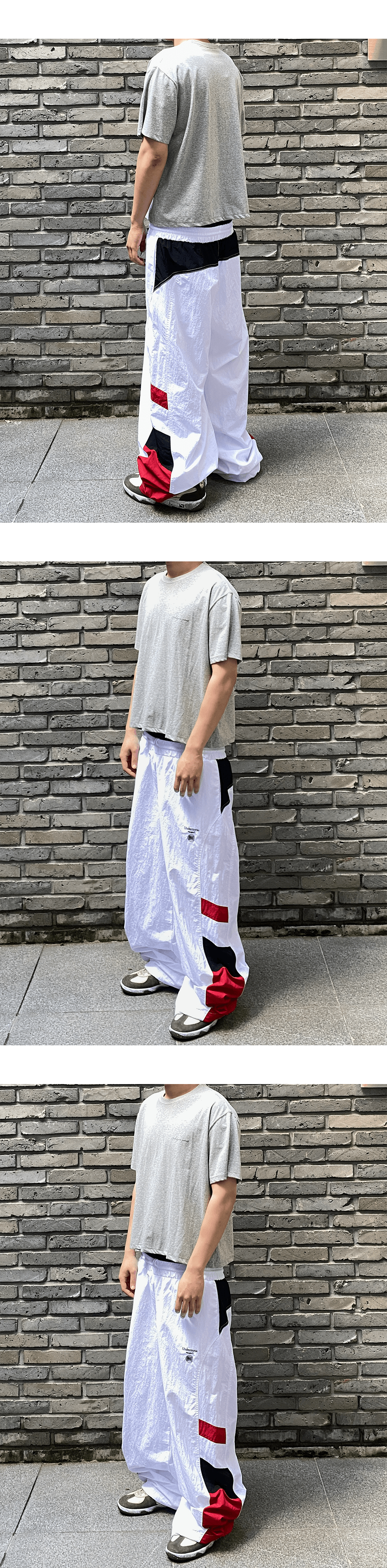 언더마이카 무.134 콤비 컬러 블록 트랙 팬츠 아이보리