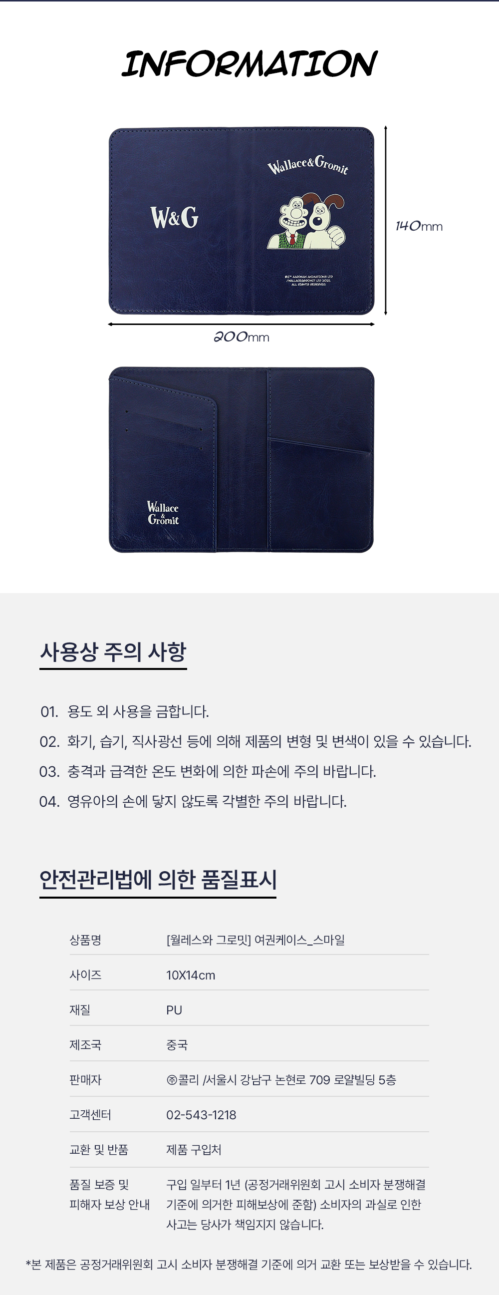 월레스와 그로밋 여권케이스 스마일