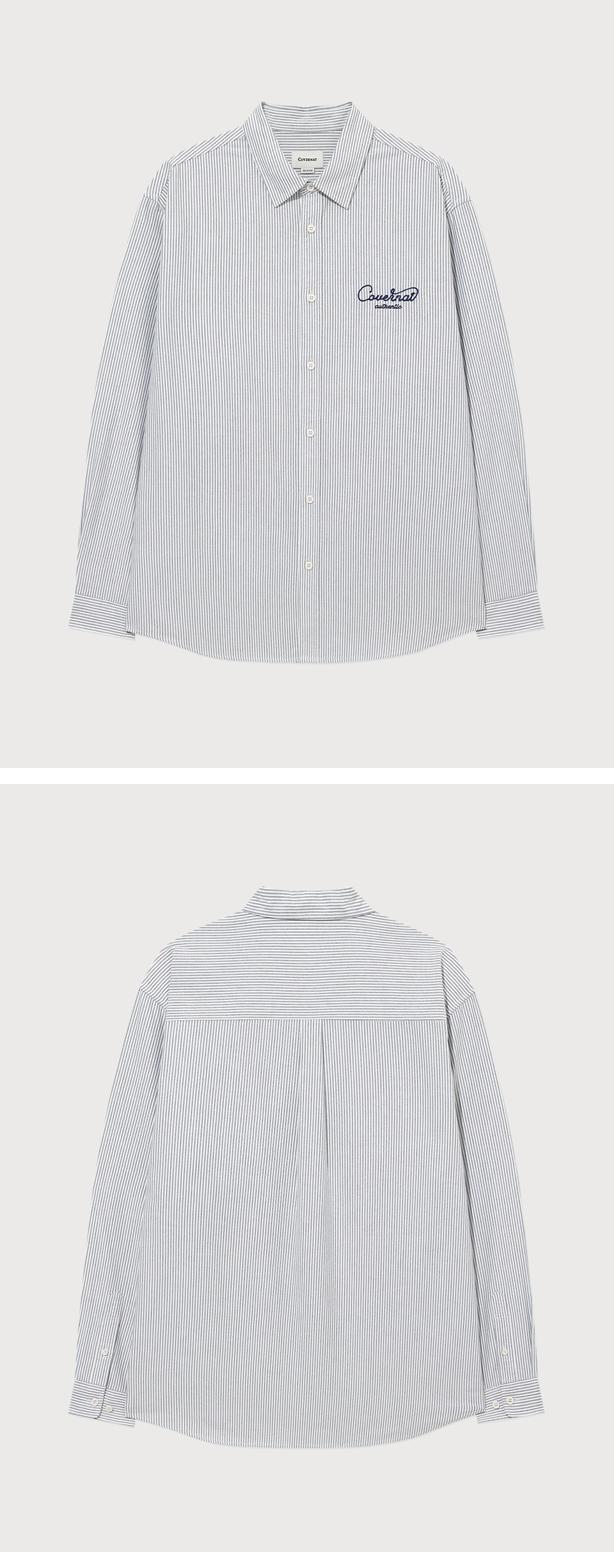 커버낫 옥스포드 스트라이프 그래픽셔츠 그레이