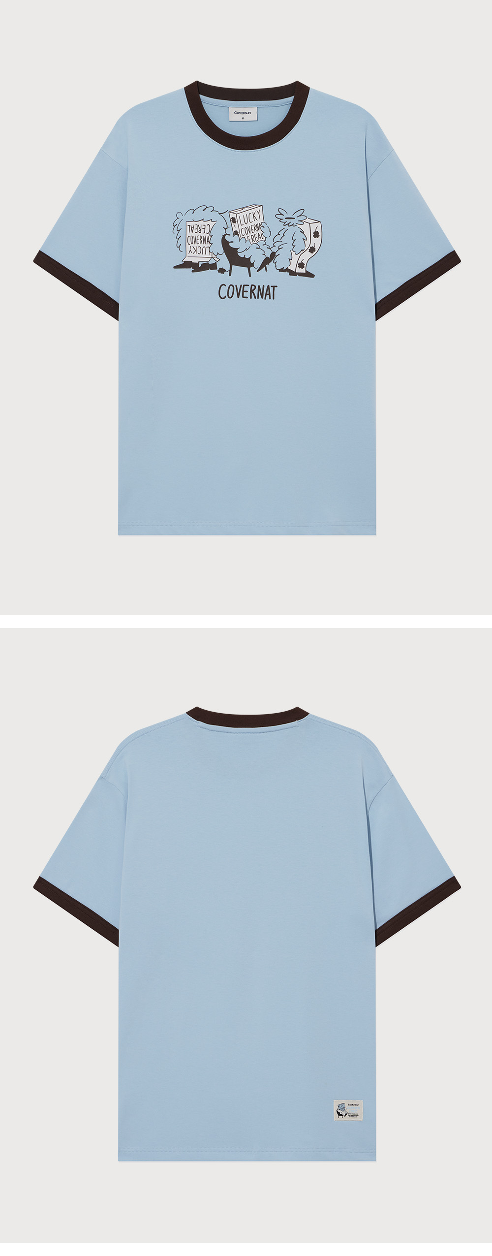 커버낫X하이다나 럭키 씨리얼 링거 티셔츠 스카이 블루