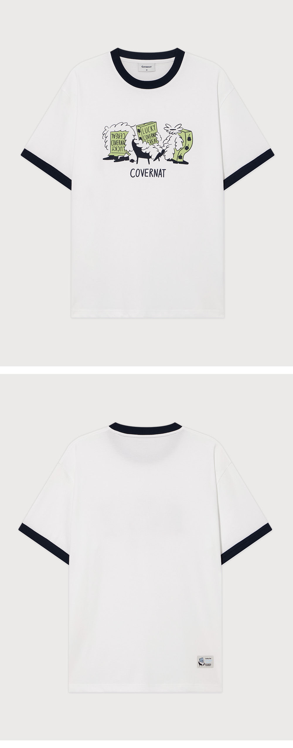 커버낫X하이다나 럭키 씨리얼 링거 티셔츠 오프 화이트