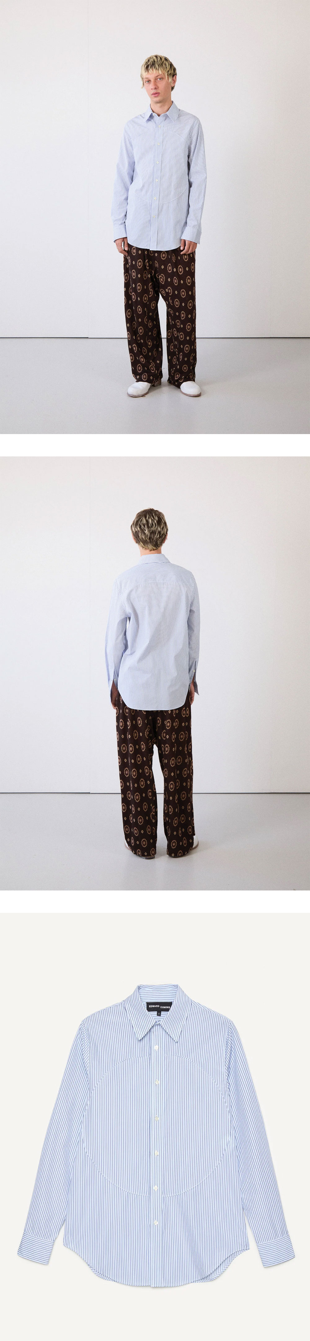 에드워드 커밍 우먼 핀턱 렁 셔츠 페일 블루 네이비 - 25FW