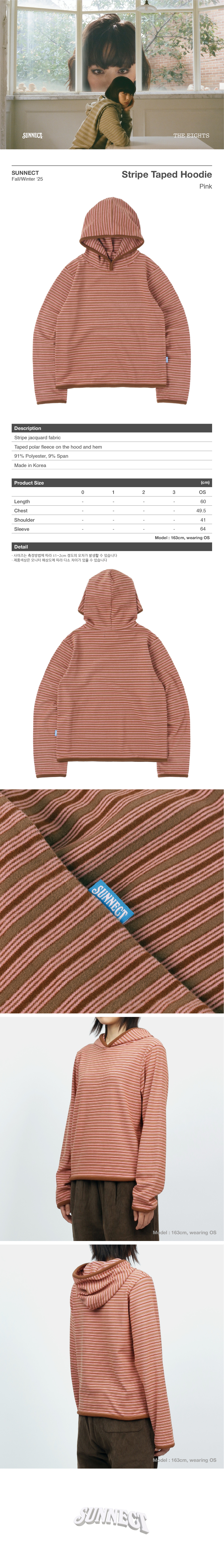써넥트 스트라이프 테이프드 후디 핑크