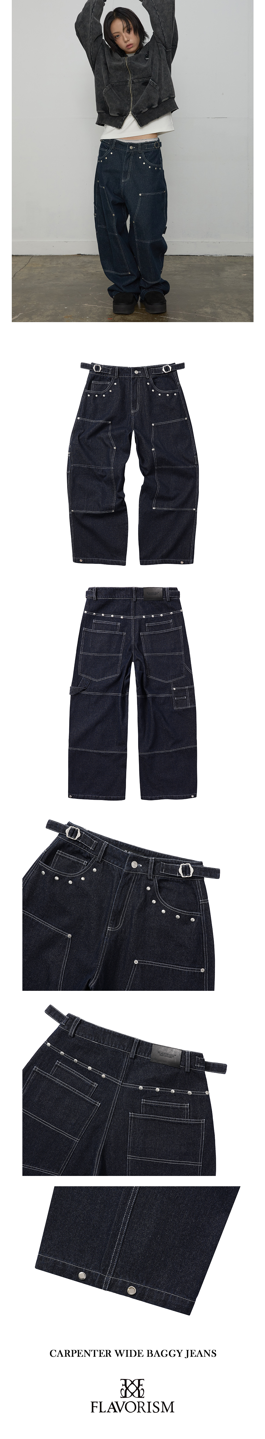 Flavorism Carpenter Wide Baggy jeans Deep Indigo