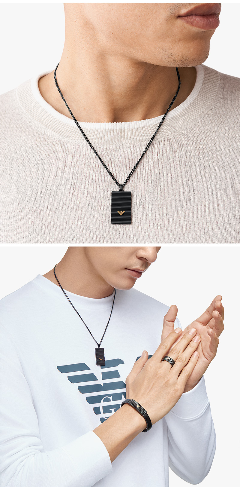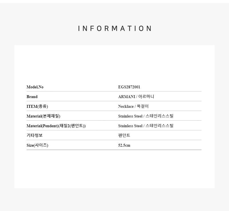엠포리오 아르마니 스테인리스 스틸 펜던트 네클리스 블랙