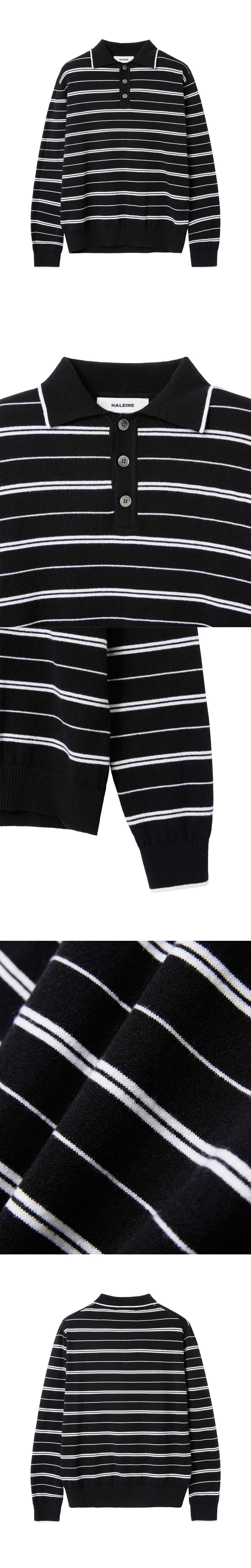 알렌느 스트라이프드 울 코튼 폴로 니트 블랙