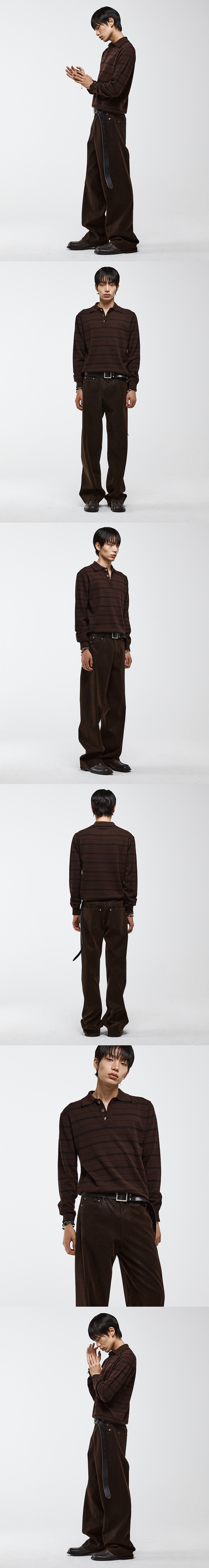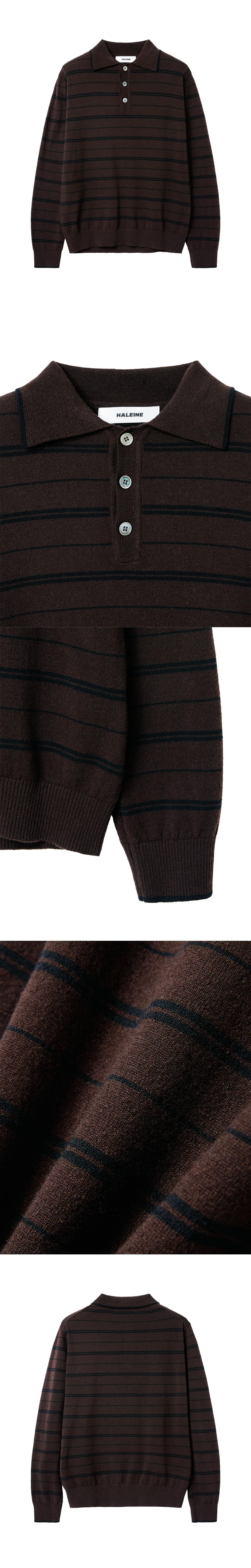 Haleine Striped Wool Cotton Polo Knit Brown (WT303)