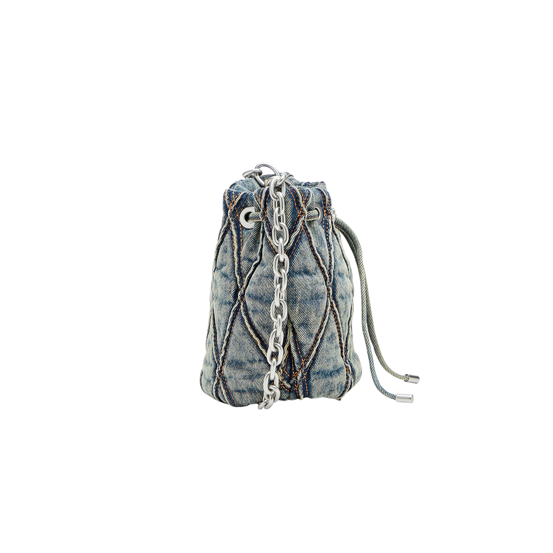 디젤 참-D S-미니 아가일 퀼티드 데님 버킷백 블루