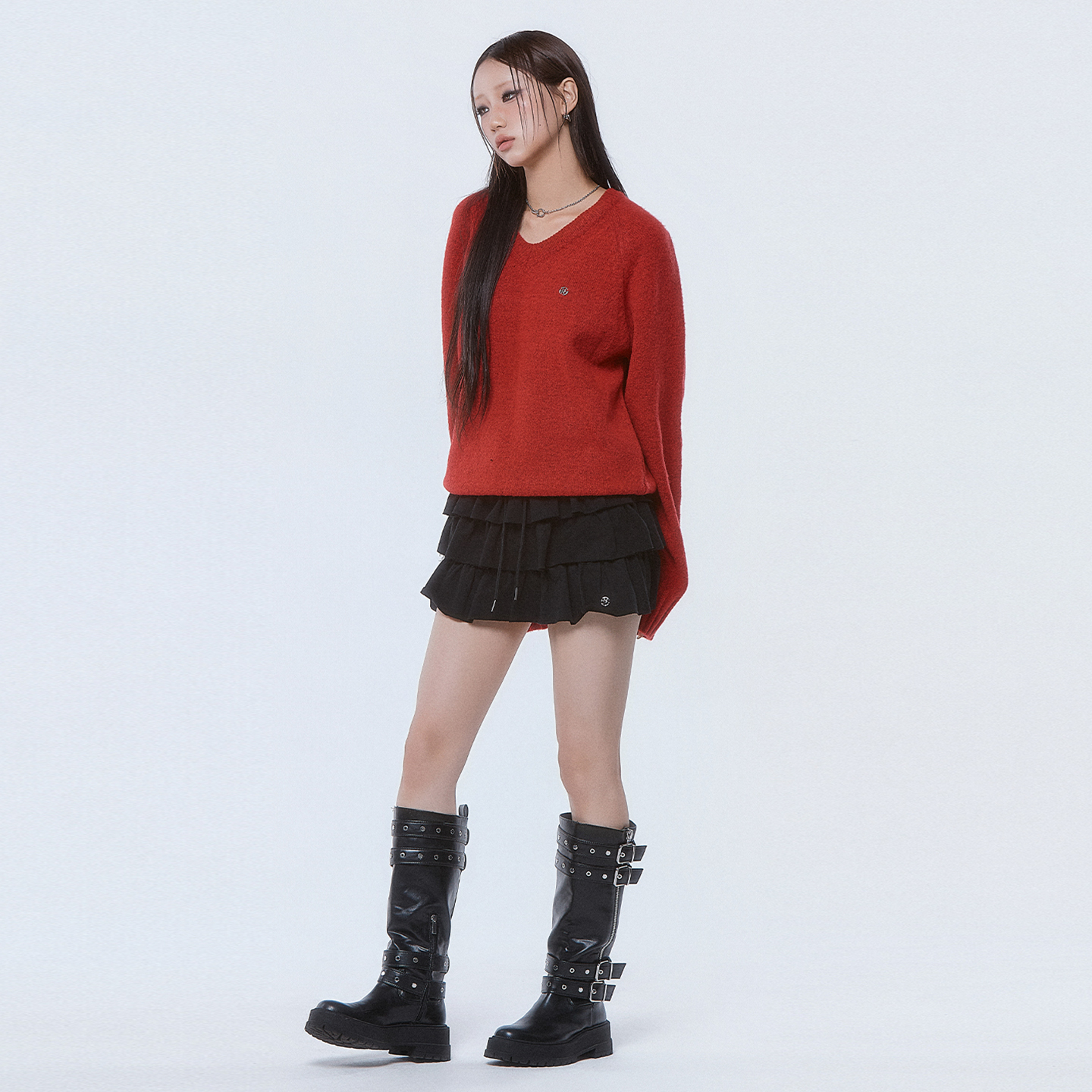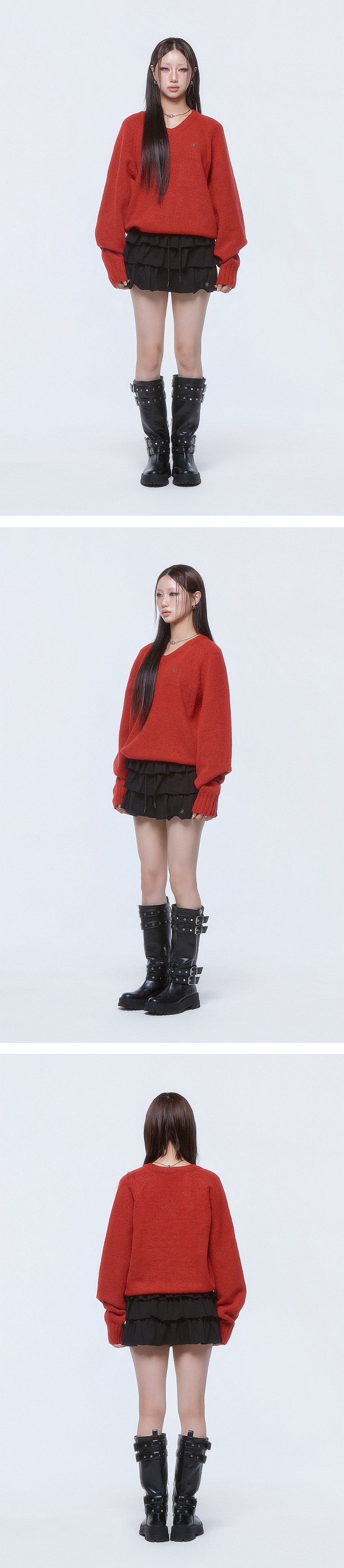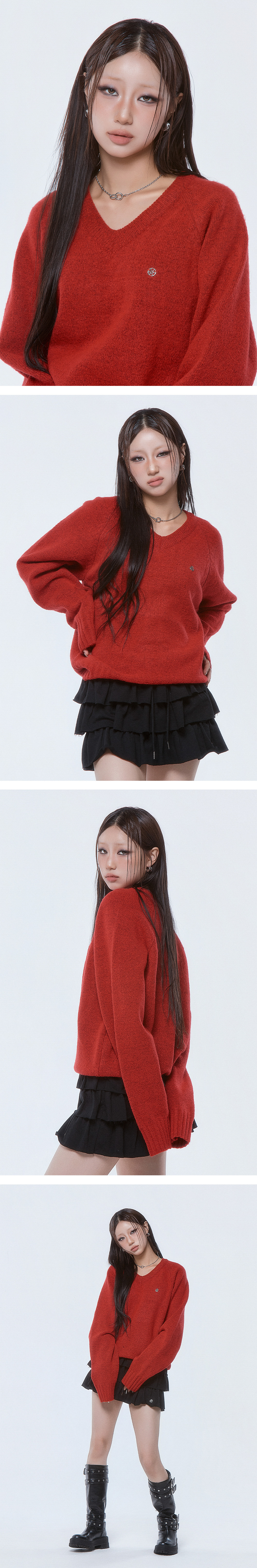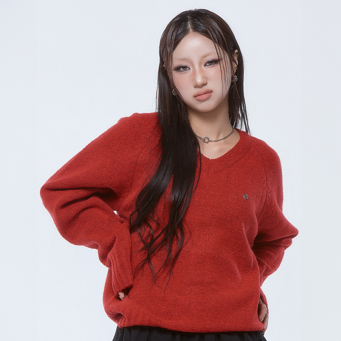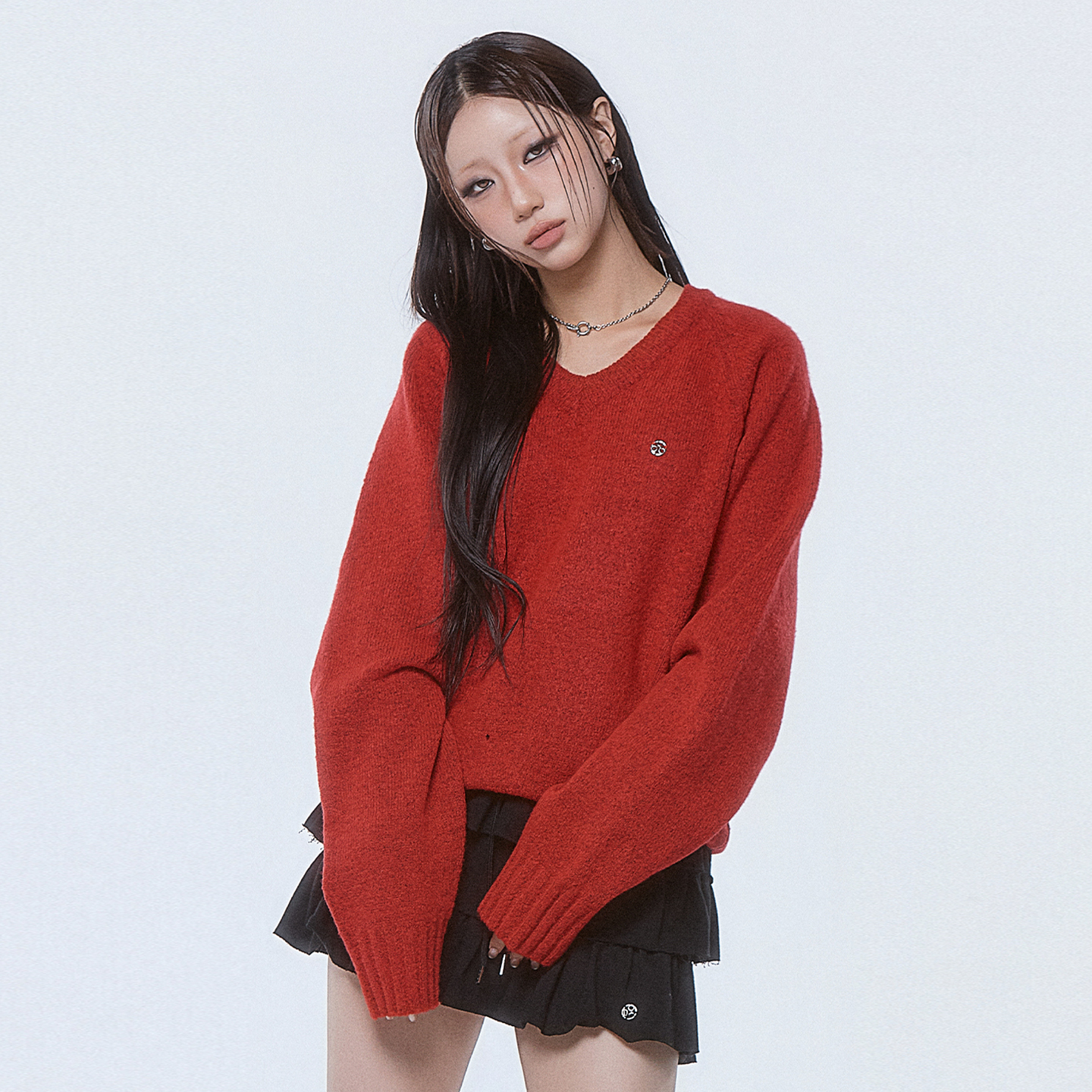 Product Description. ㆍ핏: 세미 크롭핏 ㆍ브이넥 라인에 여유로운 라글란 실루엣으로 데일리하게 착용하기 좋습니다. ㆍDUC 심볼 앰블럼 포인트 ㆍ모든 체형 착용 가능한 프리 사이즈 Product Size & Info. Size : One Size Color : Black, Ivory, Red Material : Acrylic 70%, Polyurethane 27%, Spandex 3% One Size : Length 63 / Shoulder 50 / Chest 54 / Sleeve Length 53 Model Spec. Woman : 170cm (One Size 착용) Washing Tip. Dry cleaning + Only hand washing 드라이 클리닝 또는 손세탁을 권장하며 케어 라벨을 참고해 주세요. MADE IN KOREA.