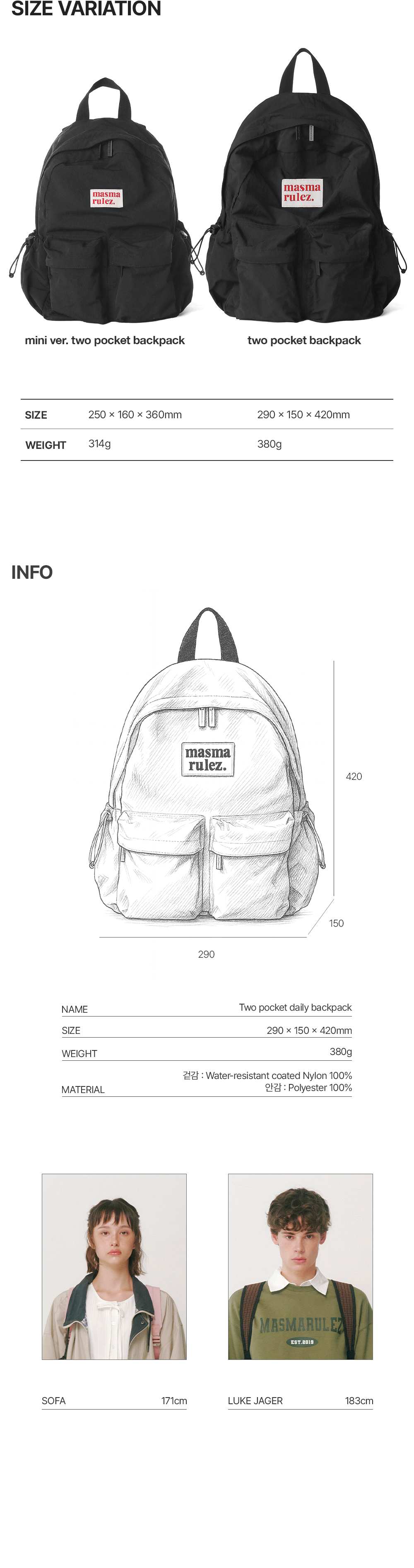 마스마룰즈 투 포켓 데일리 백팩_블랙