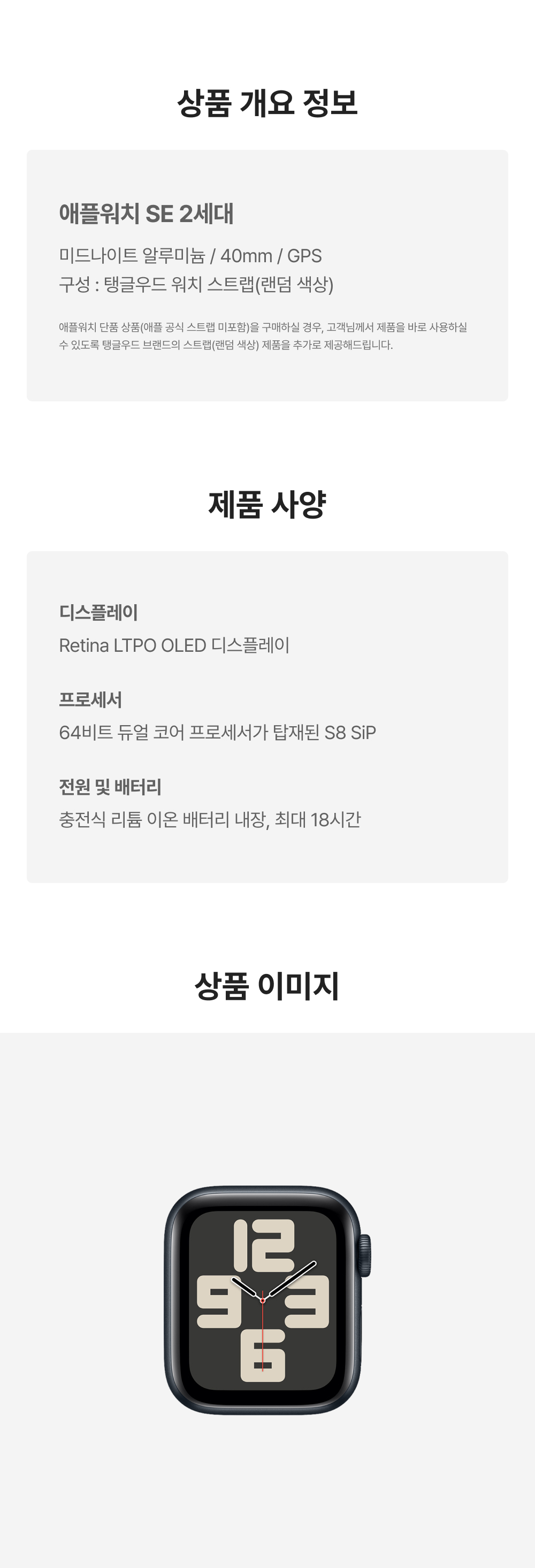 [S등급] 리퍼비시 애플 워치 SE 2세대 40mm GPS 미드나이트 알루미늄 케이스