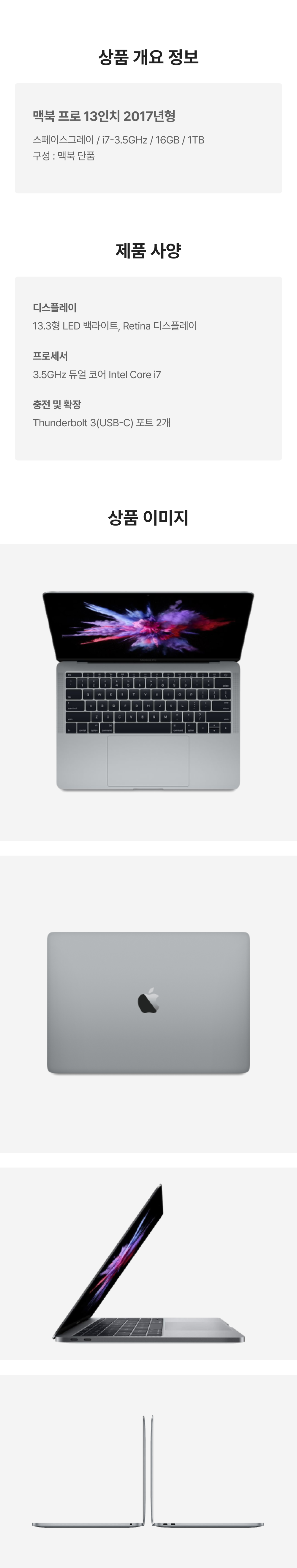[B등급] 리퍼비시 2017 맥북 프로 13 i7-3.5GHz 256기가 SSD 16기가 램 스페이스그레이