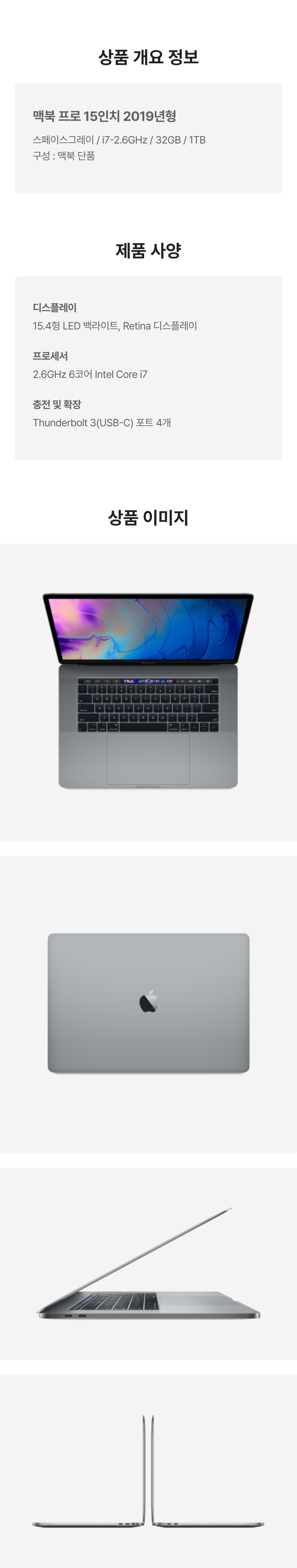 [S등급] 리퍼비시 2019 맥북 프로 15 i7-2.6GHz 1테라 SSD 32기가 램 스페이스그레이