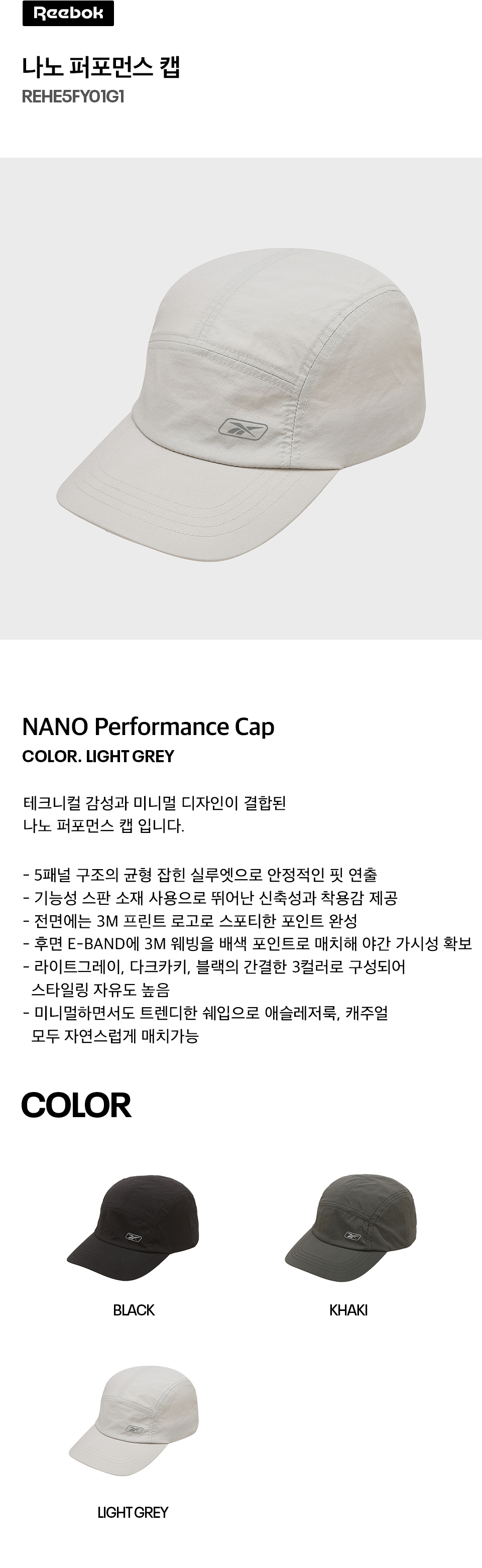 리복 나노 퍼포먼스 캡 라이트 그레이