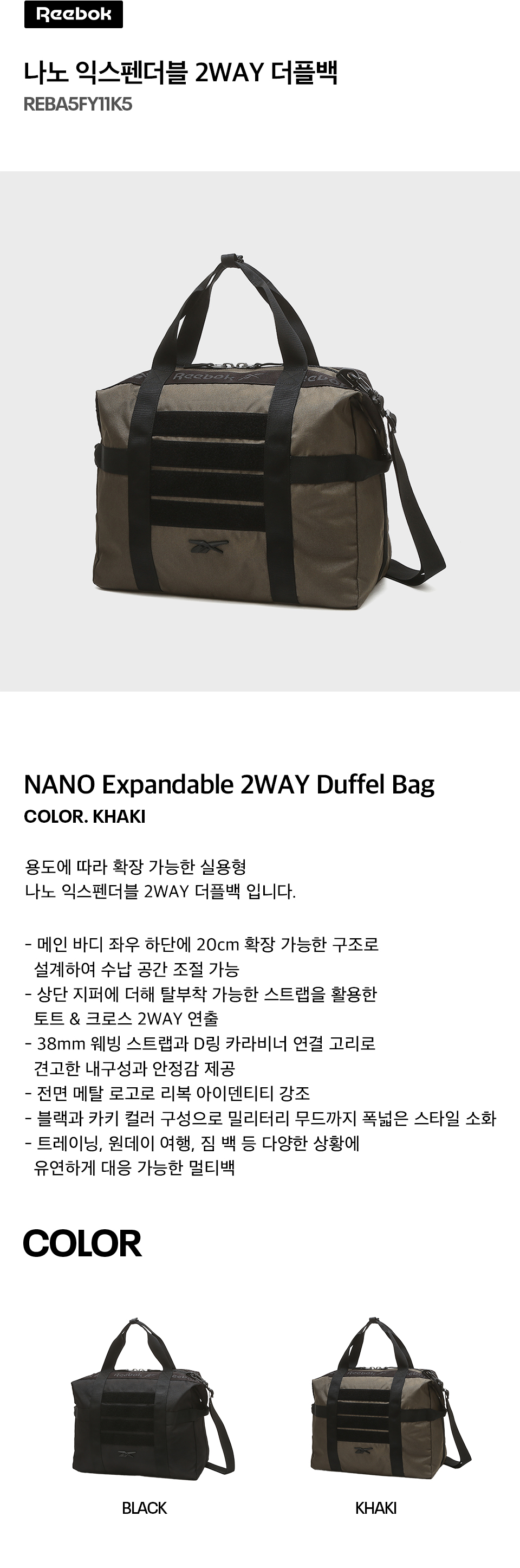 리복 나노 익스펜더블 투웨이 더플백 카키