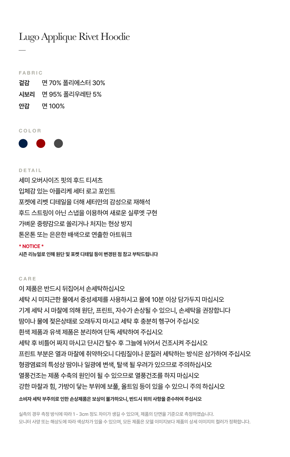 측정 방법에 따라 사이즈에 일부 오차가 있을 수 있습니다.
