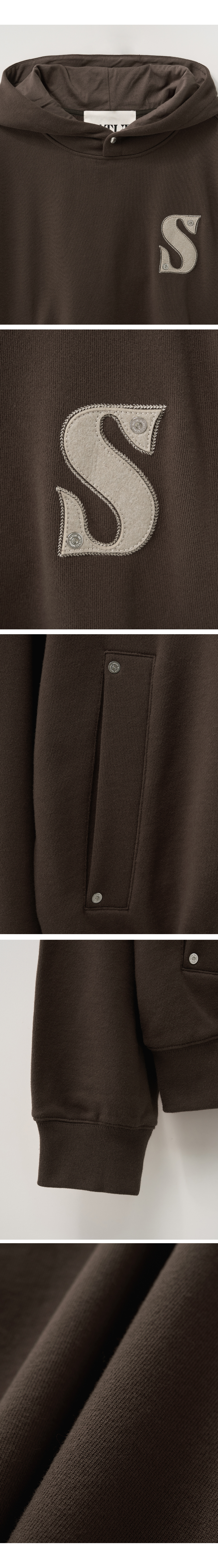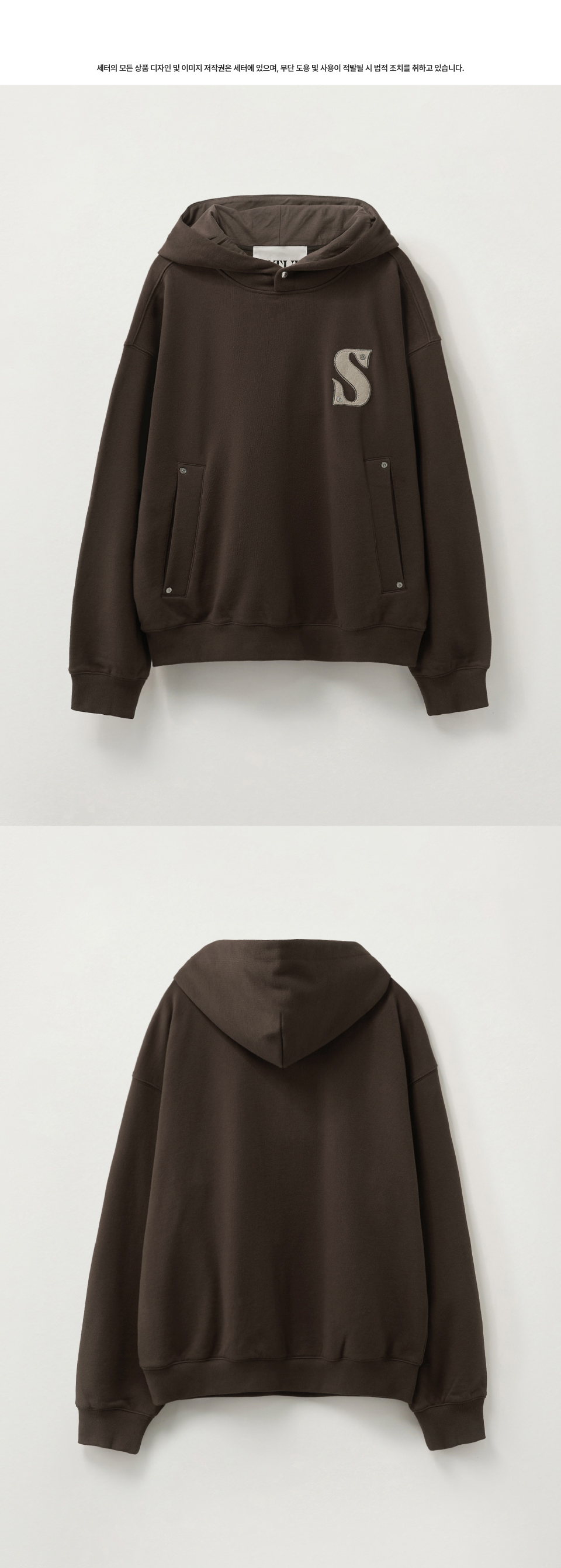 세터 스몰 리벳 아플리케 포켓 로고 후드 브라운