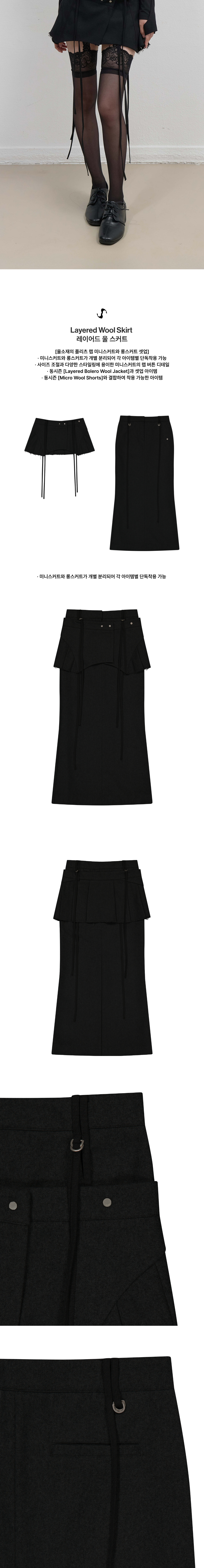 울소재의 플리츠 랩 미니스커트와 롱스커트 셋업 | 마이크로기장의 플리츠 미니스커트, 머메이드 핏 롱스커트 | OJOS 로고 버튼 디테일 | 높은 보온성의 고급 울소재 | 미니스커트와 롱스커트가 개별 분리되어 각 아이템별 단독착용 가능 | 벨트고리와 연결된 롱 스트랩 디테일 | 사이즈 조절과 다양한 스타일링에 용이한 미니스커트의 랩 버튼 디테일 * 동시즌 [Layered Bolero Wool Jacket]과 셋업 아이템 * 동시즌 [Micro Wool Shorts]와 결합하여 착용 가능한 아이템