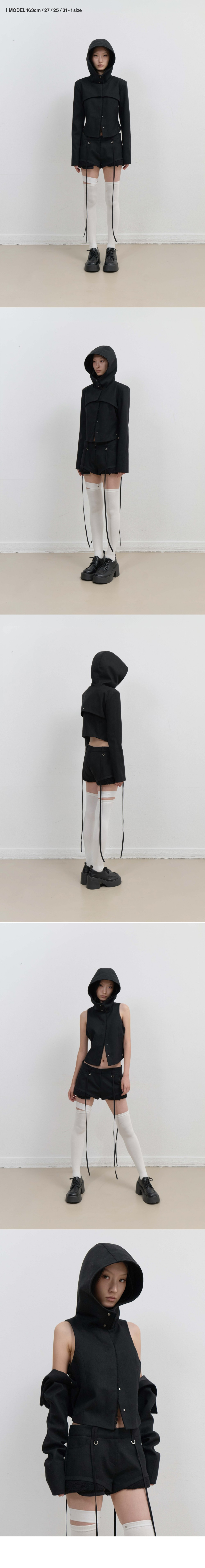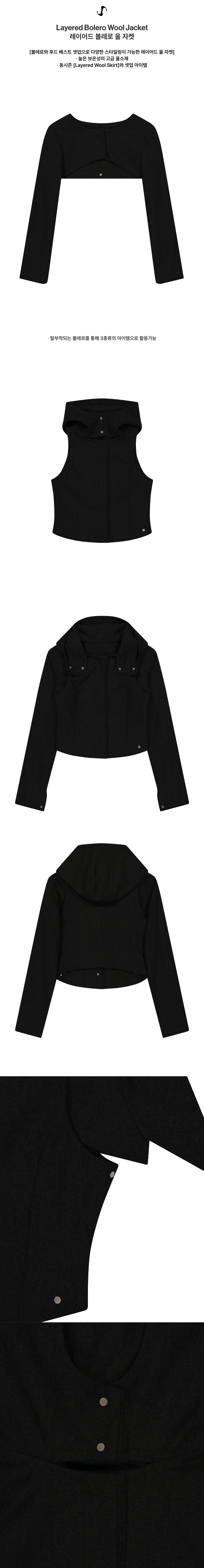 볼레로와 후드 베스트 셋업으로 다양한 스타일링이 가능한 레이어드 울 자켓 | 세미크롭의 슬림핏 | OJOS 로고 버튼 디테일 | 높은 보온성의 고급 울소재 | 탈부착되는 볼레로를 통해 3종류의 아이템으로 활용가능 * 동시즌 [Layered Wool Skirt]와 셋업 아이템