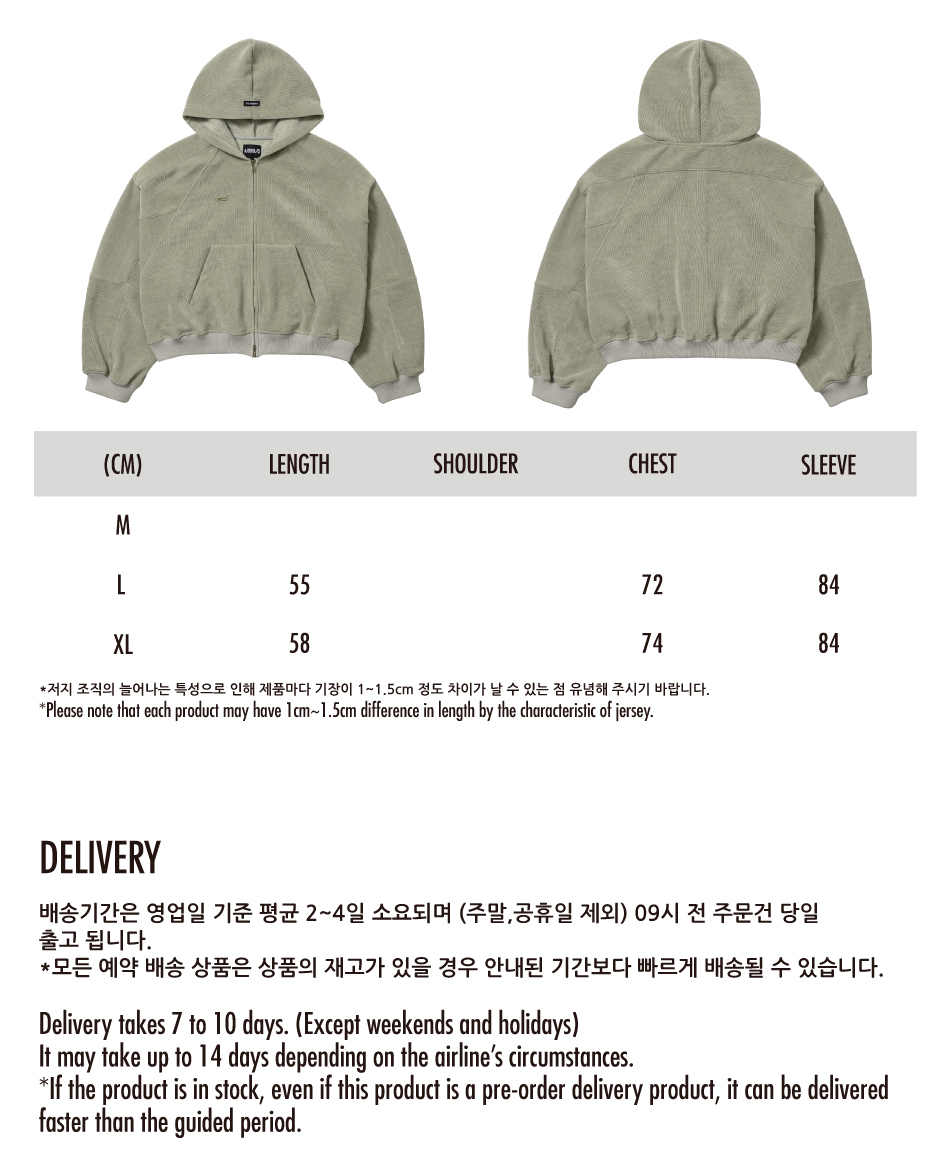 아조바이아조 코듀로이 숏 집업 후디 애쉬 카키