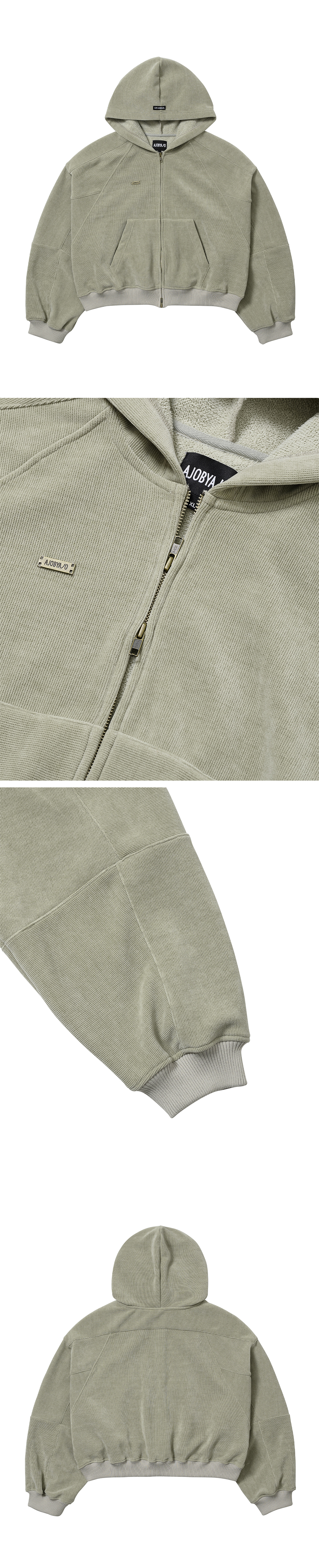 AJOBYAJO Corduroy Short Zip-Up Hoodie Ash Khaki