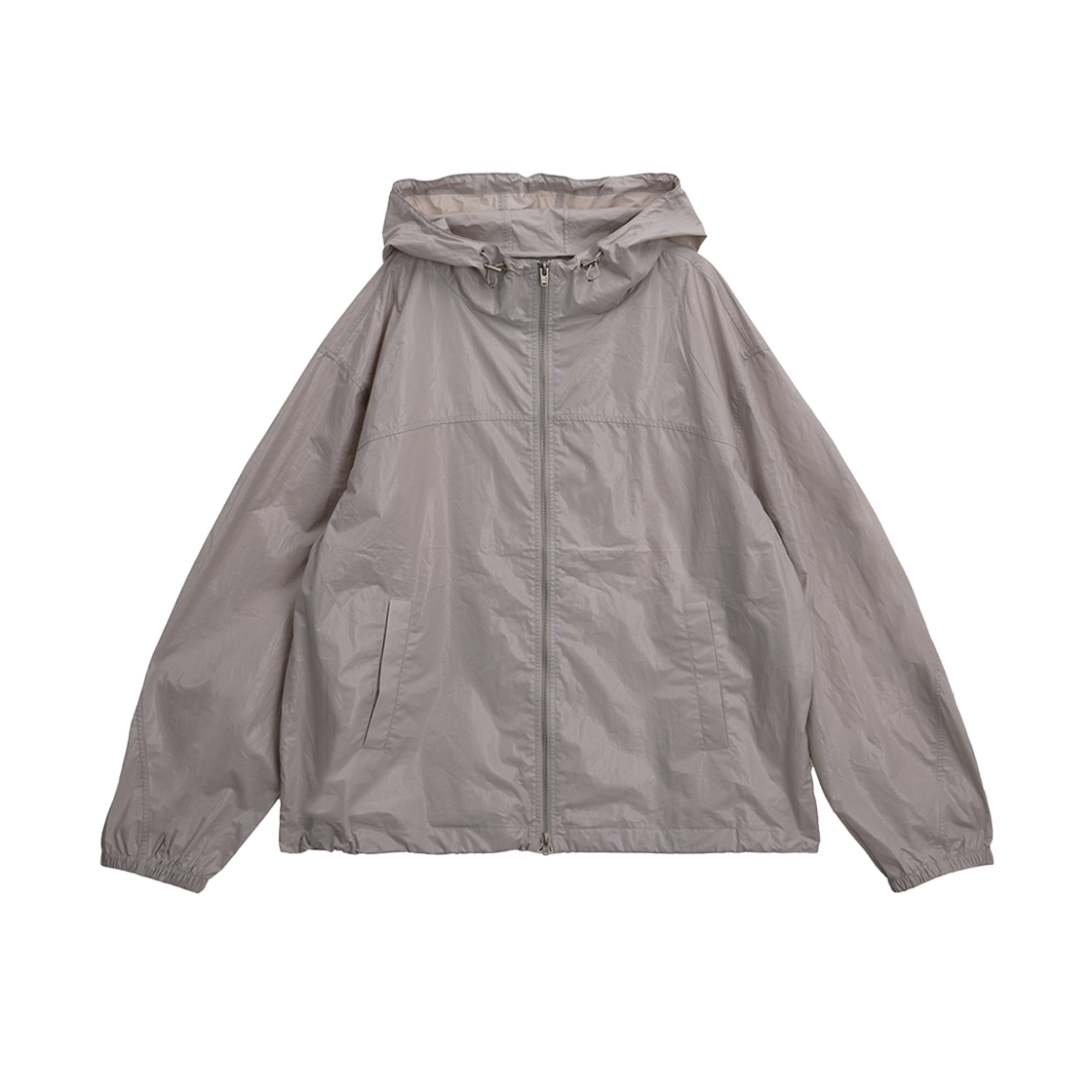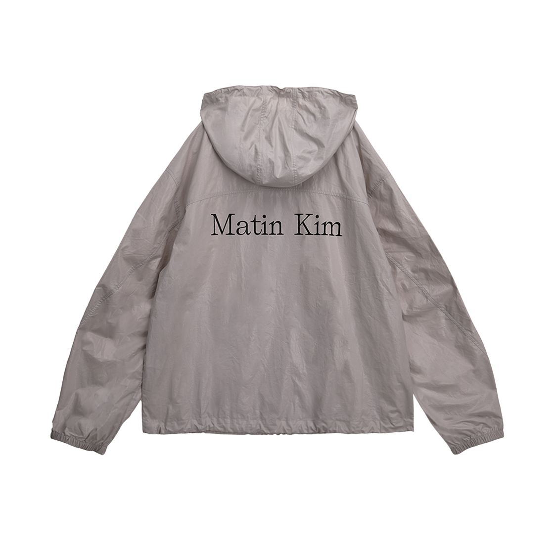 마뗑킴 마뗑 하이 넥 후디 코팅 점퍼 라이트 그레이