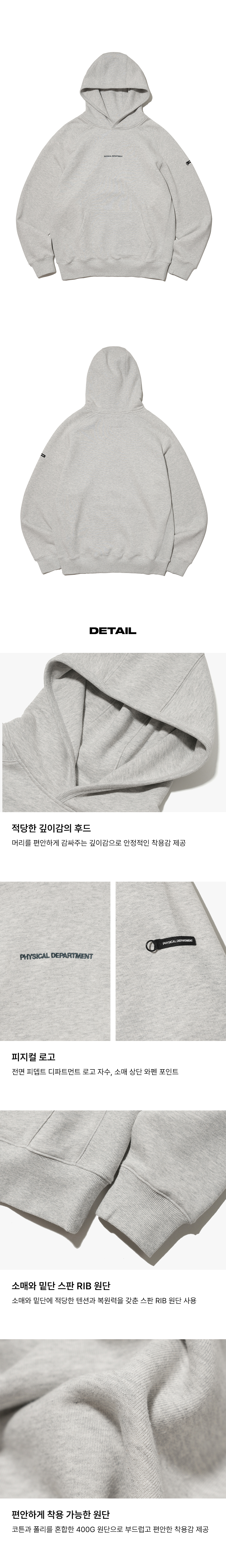 피지컬 디파트먼트 P-Dept 오리지널 로고 필드 후드 그레이